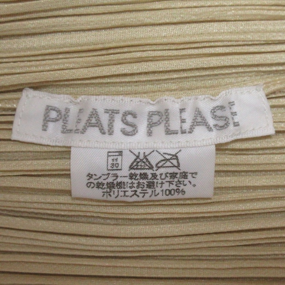 良品 PLEATS PLEASE プリーツプリーズ イッセイミヤケ 開襟 オープンカラー 長袖シャツ ブラウス PP05-JJ001 サイズ3 ベージュ