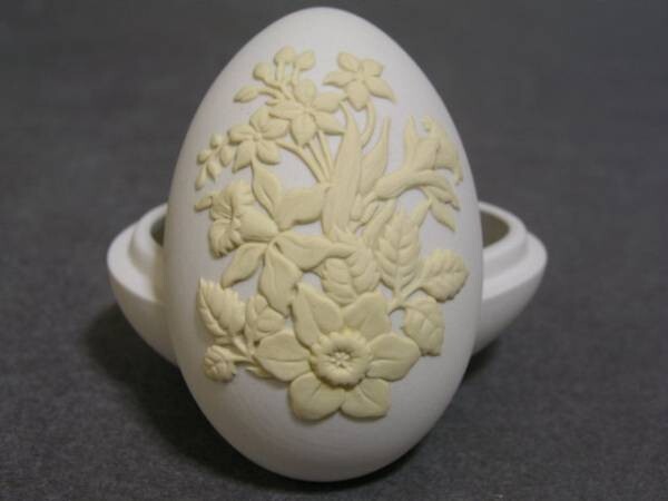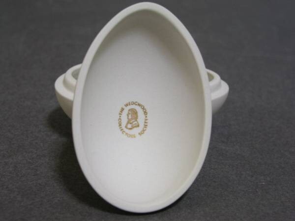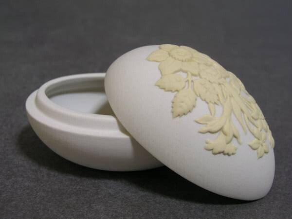 ウェッジウッド 白/淡黄ジャスパー 可愛い小型卵形蓋物 「花」