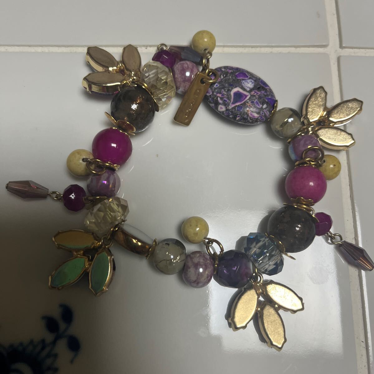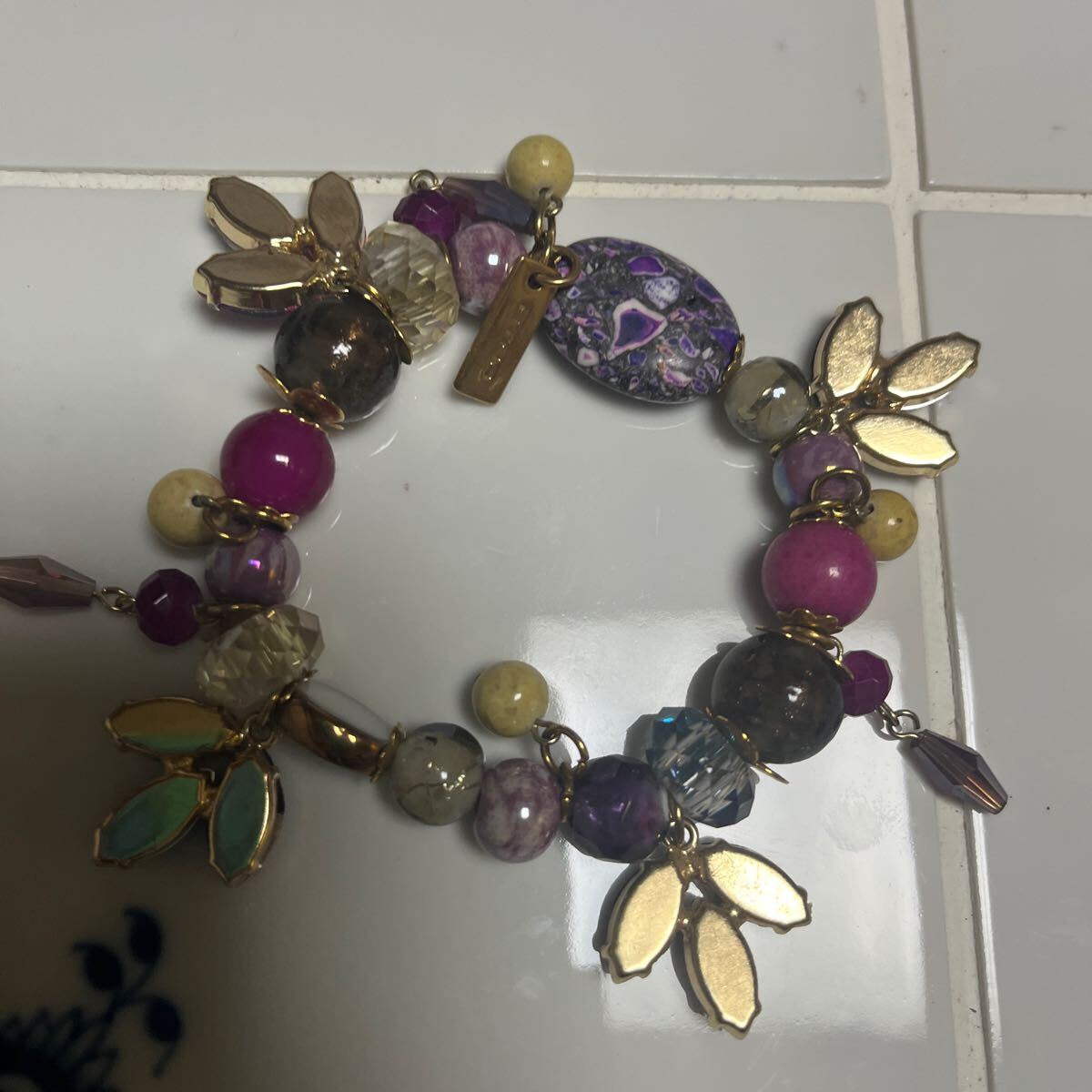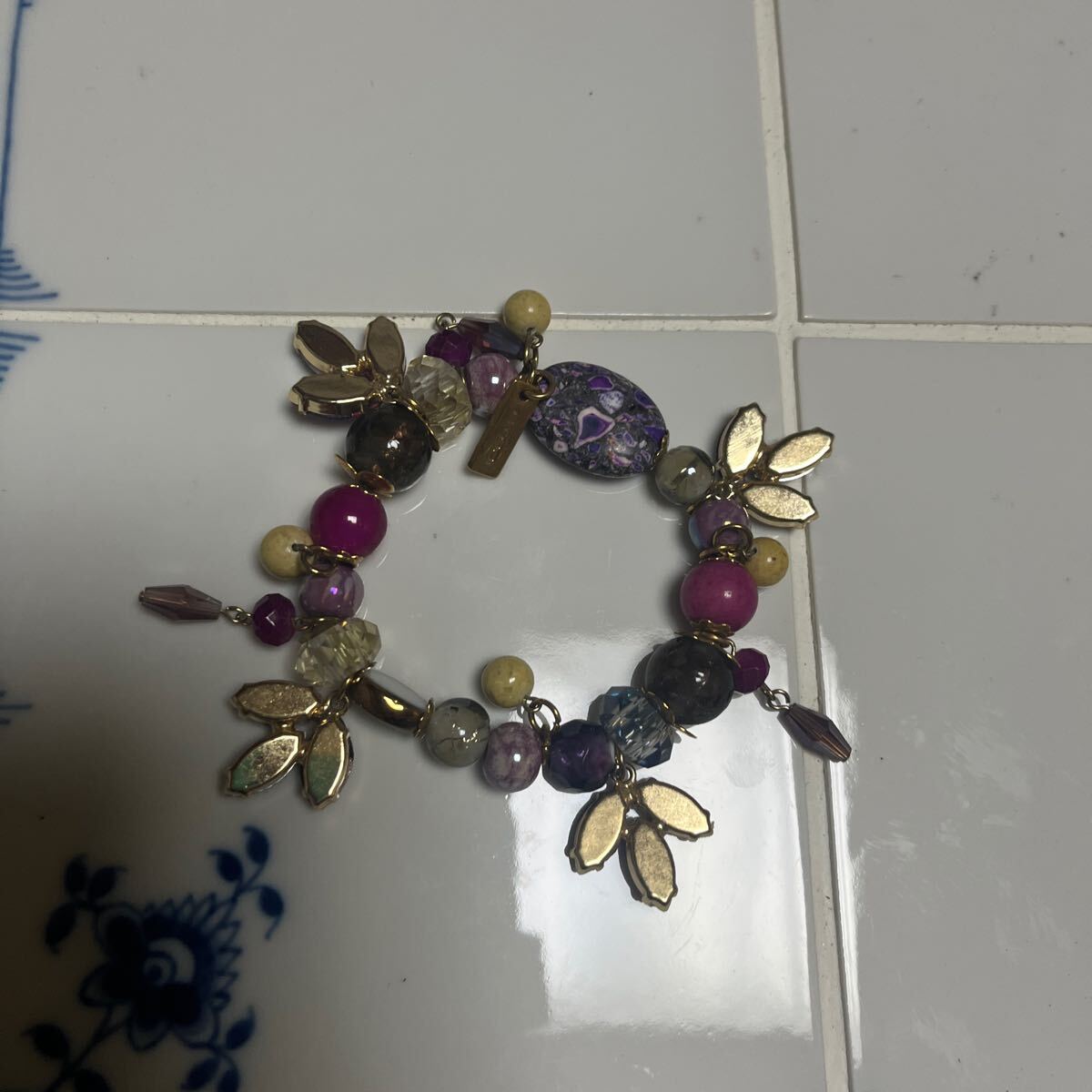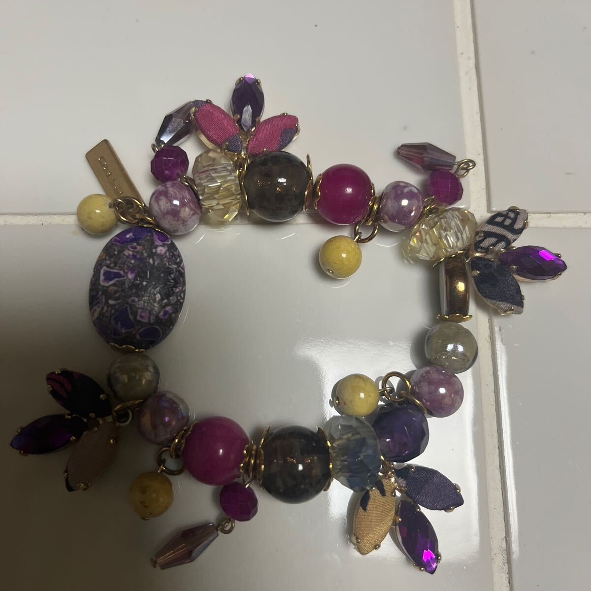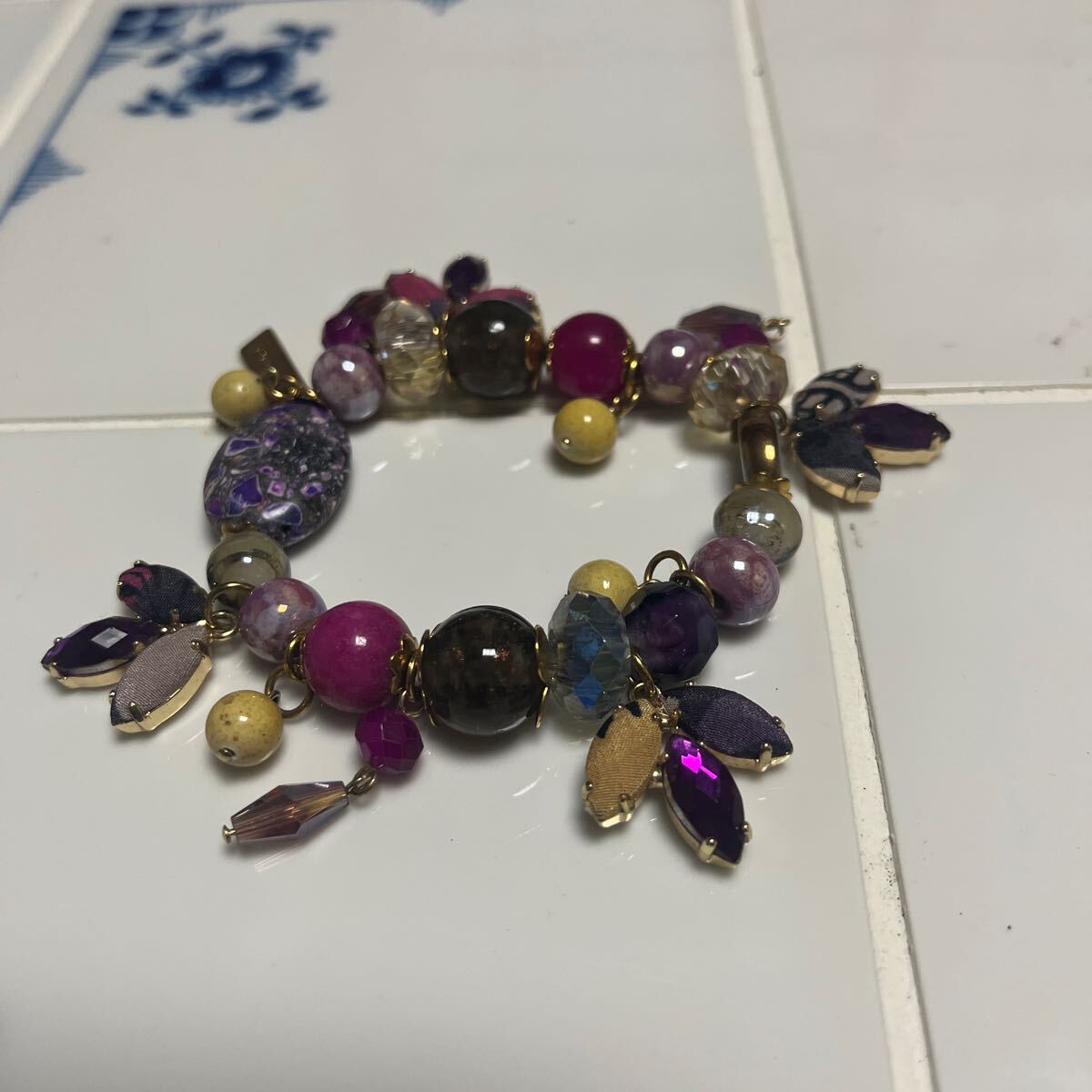 紫色のビーズとストーンを使用した装飾的なブレスレット。