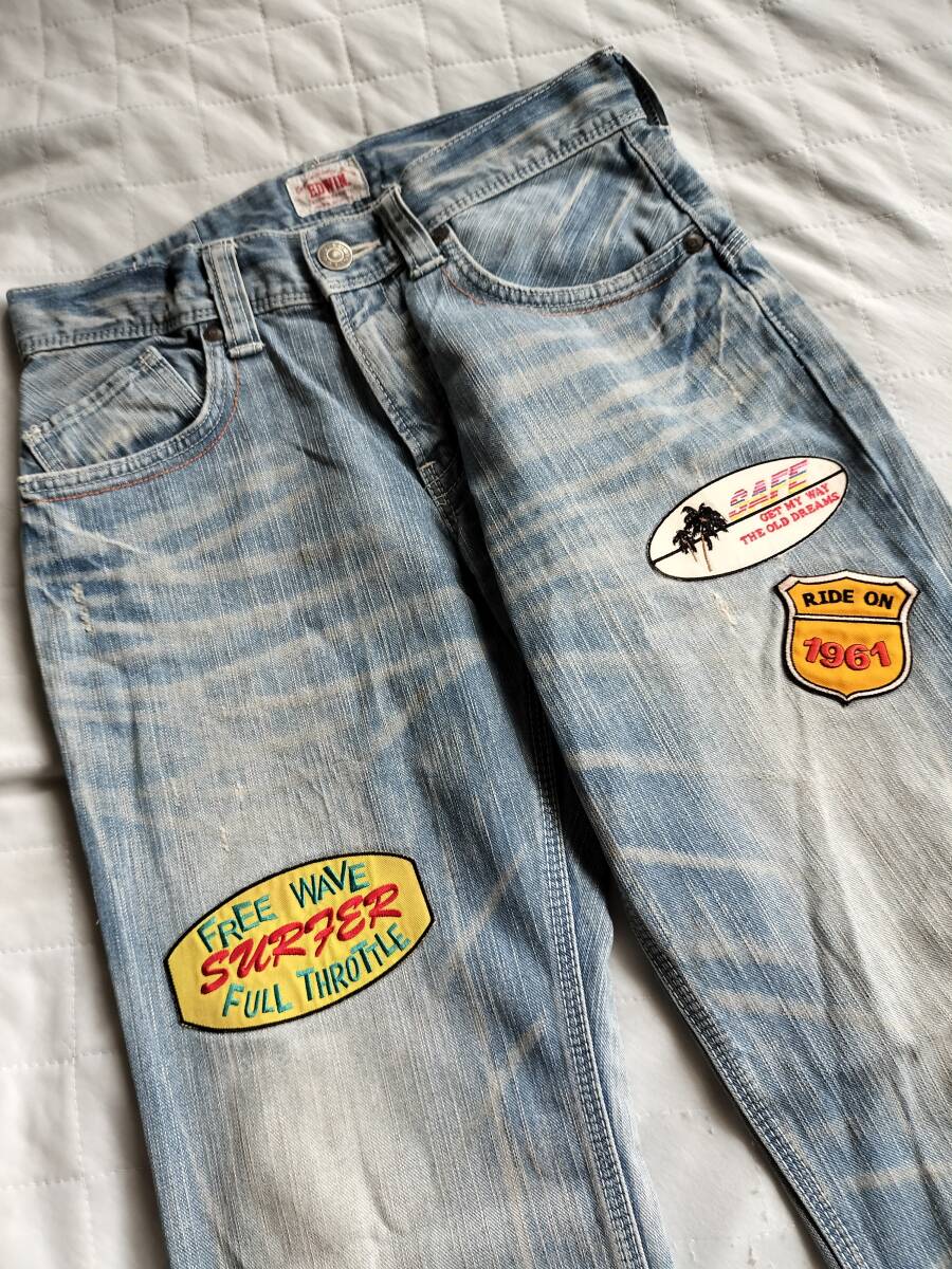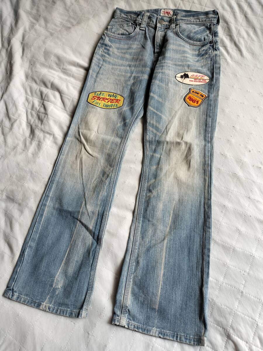 お洒落なワッペン    シンチバッグ      ブーツカットデニム     ダメ-ジデニム