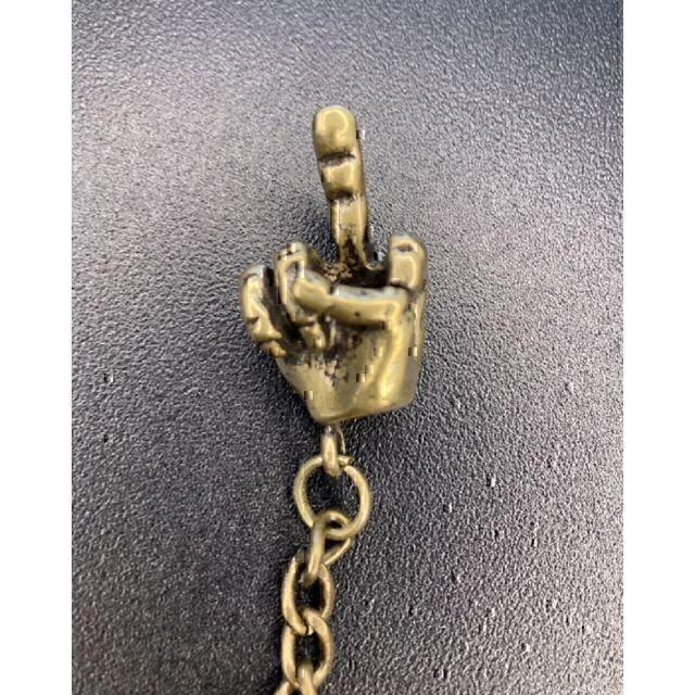 真鍮製のファックユーサインチャームです。真鍮製のためかなりずっしりとした印象を受けます。