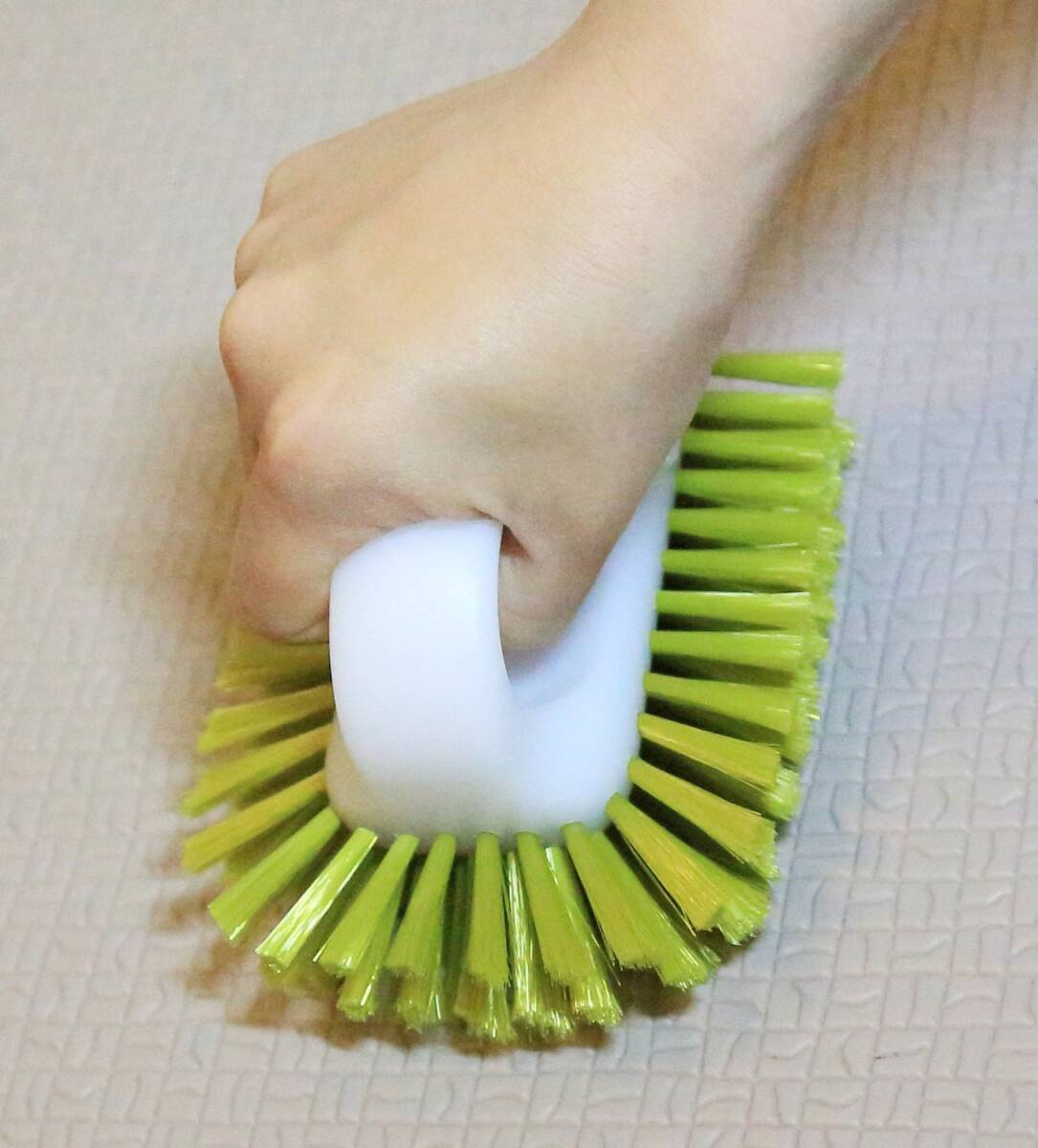 職人とデザイナーがこだわって作った掃除ブラシ 取っ手を握っても本体に手が当たらない 毛の面積が広く、床とコーナーを同時に洗える 立てたり、バーに吊り下げての保管が可能 ソフトタイプ 安心の日本製