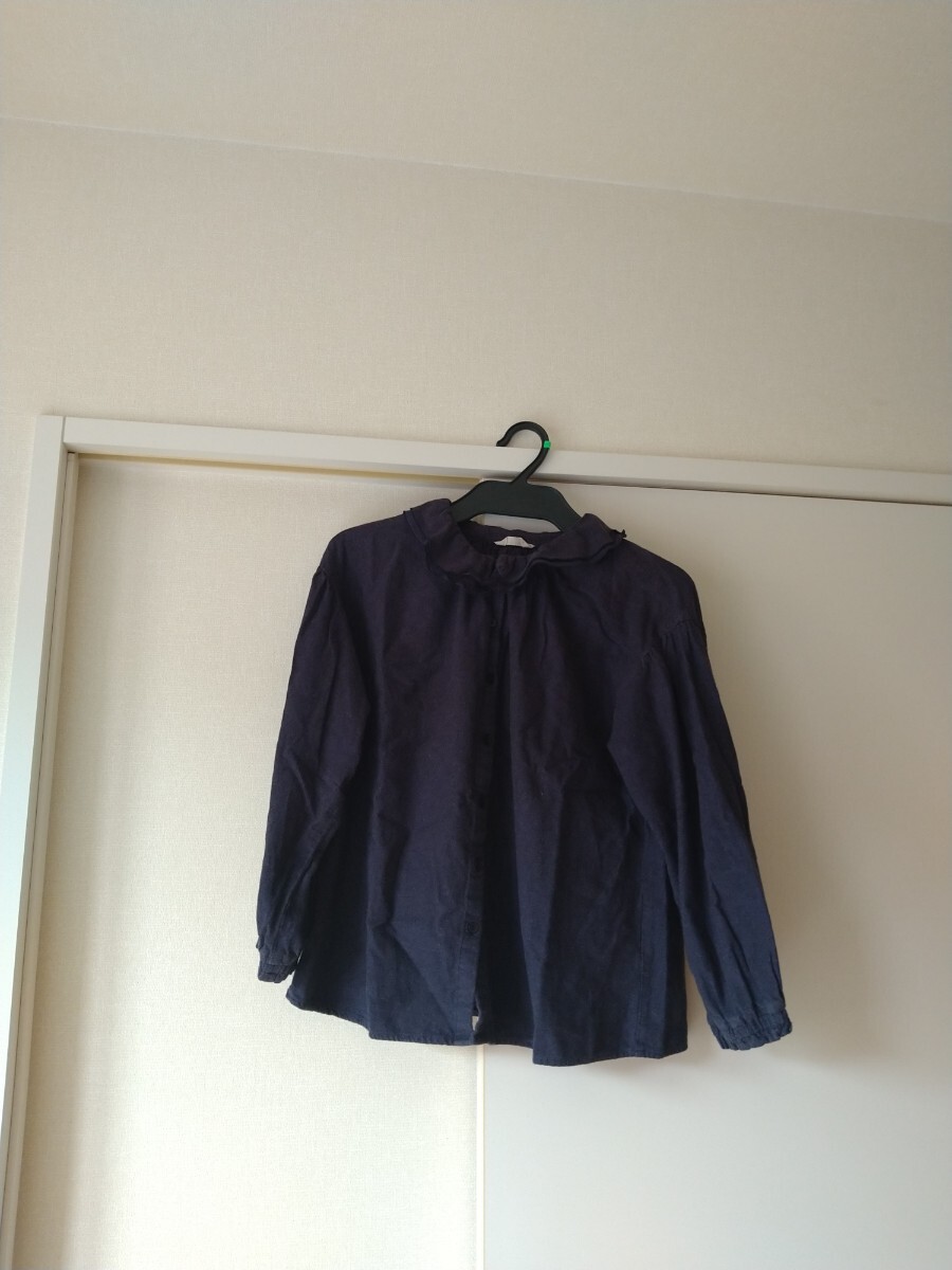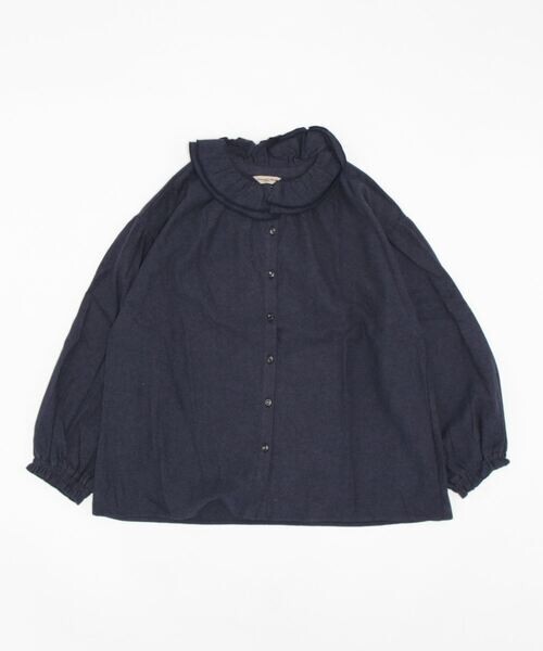 Samansa Mos2☆シャンブレー起毛襟フリルブラウス☆サマンサモスモス☆定価4950円☆フリー☆ネイビー系
