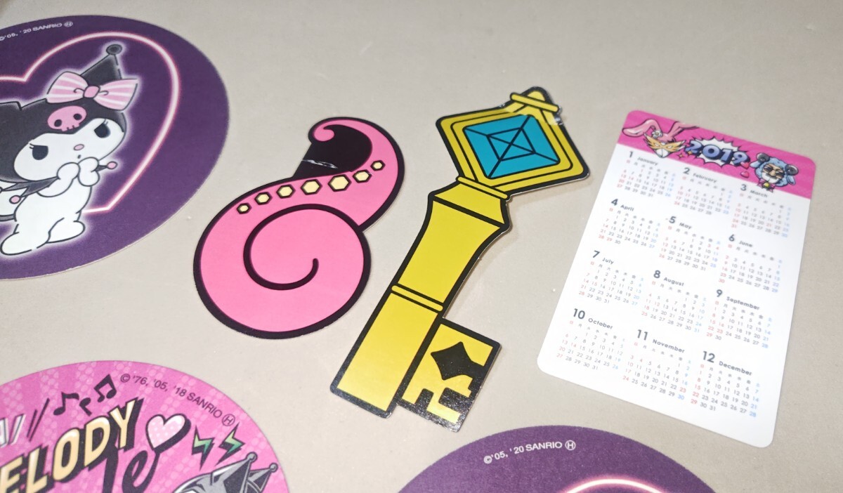 絶版 希少 2018 おねがいマイメロディ コラボカフェ ウサミミ仮面 クロミ メロディーキー & メロディータクト コースター カレンダーカード