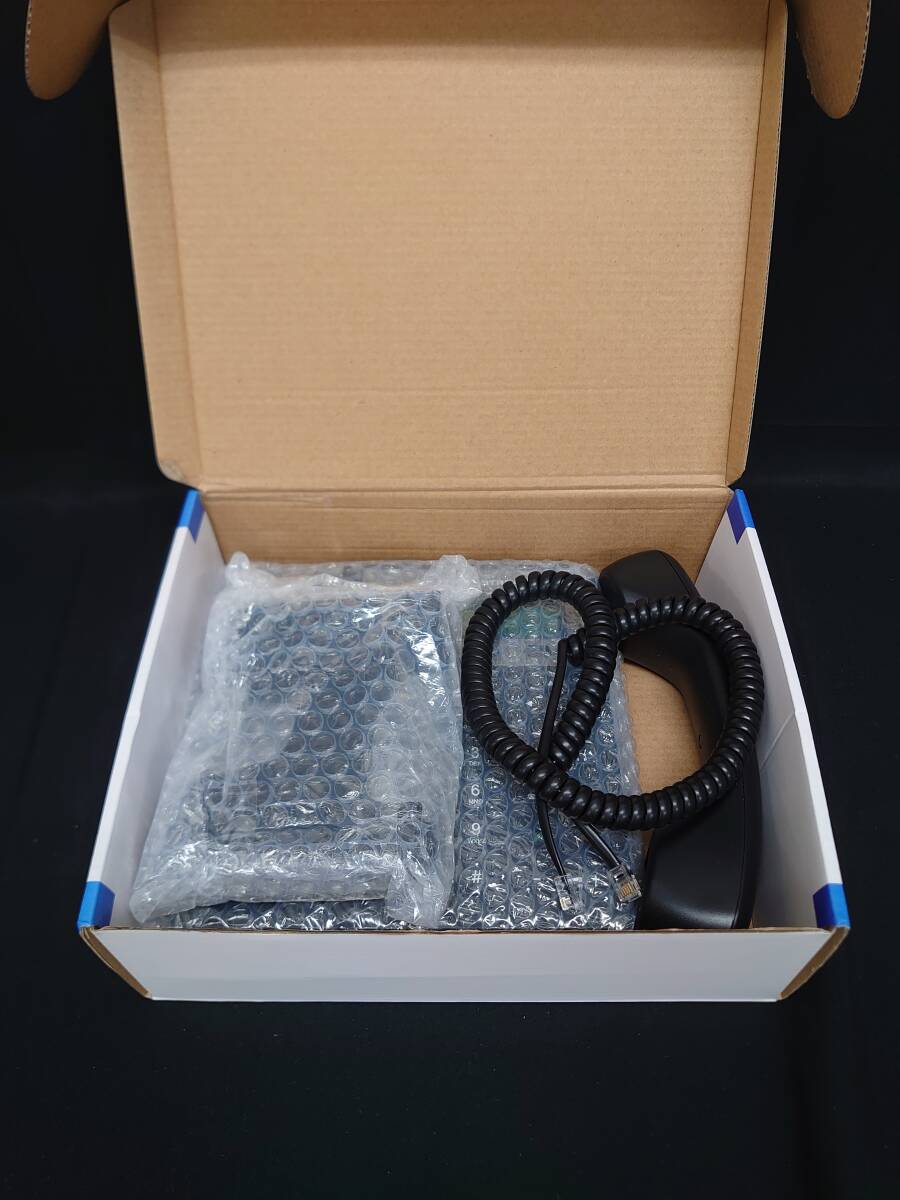 緩衝材を巻くと箱に入りきらないので、受話器及びコードには緩衝材を付けずに発送いたします(写真参照)。