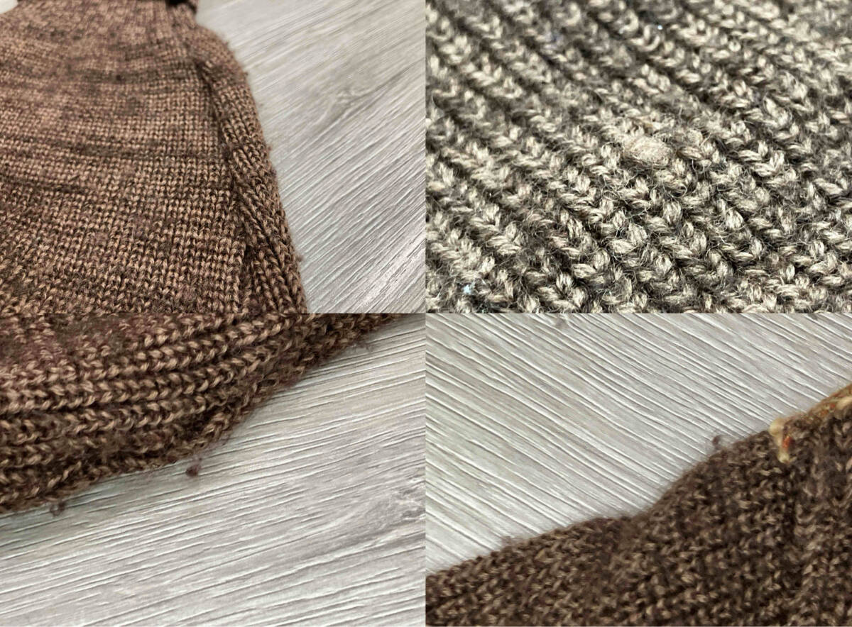 全体的に使用感あり、全体的に毛羽立ち 全体的にほつれあり |