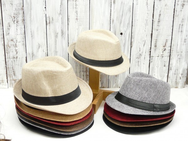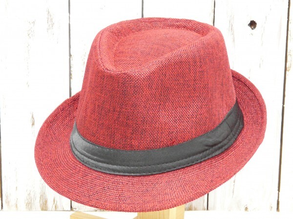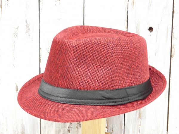 全国一律送料450円 フェドラハット シンプル リネン風 麻 レッド 男女OK 子どもサイズあり!親子コーデ♪ 中折れ