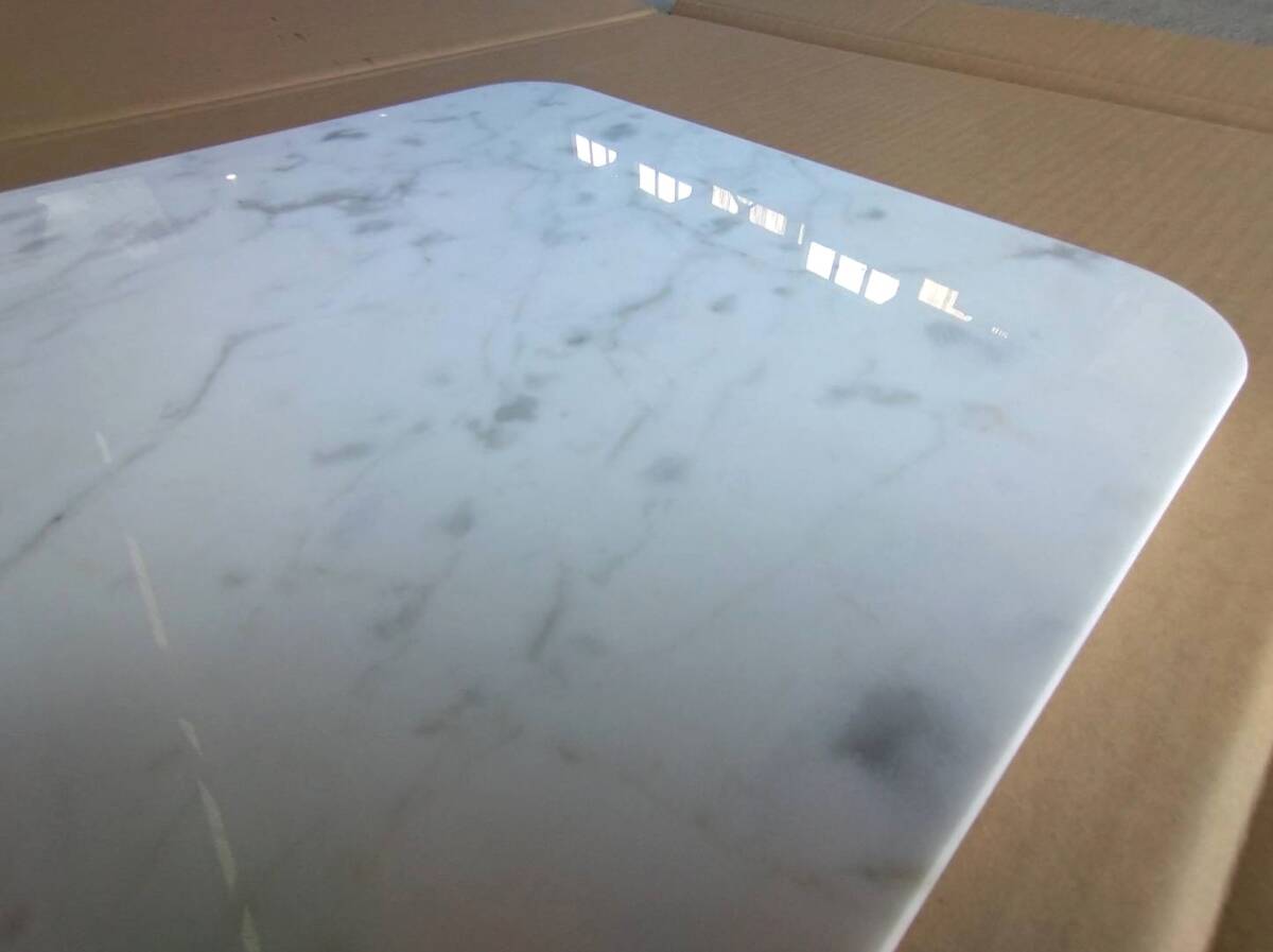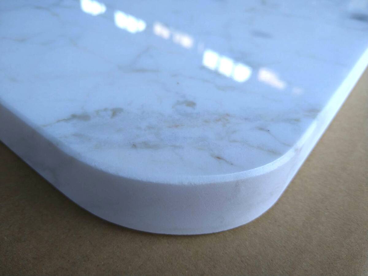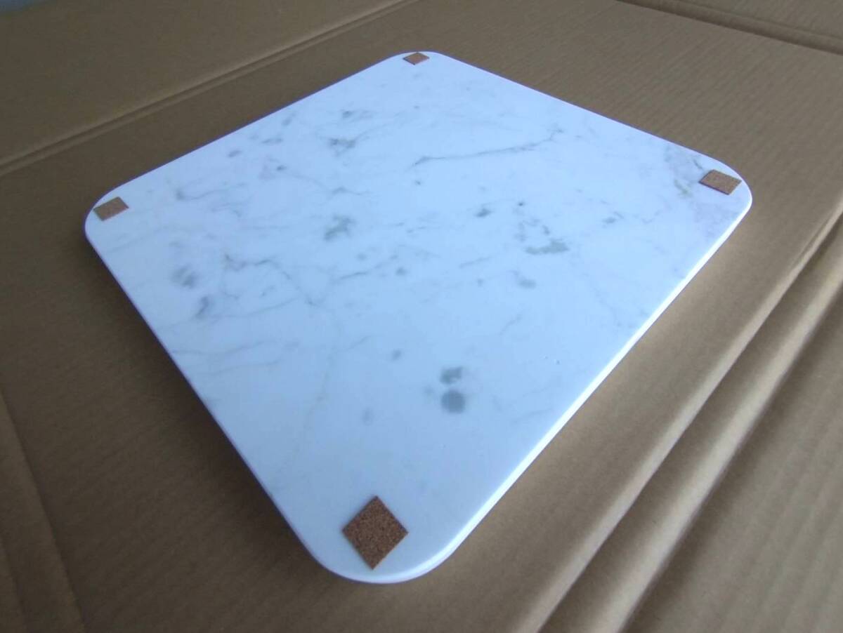●商品:天然白大理石 のし台 R コルク付き 新品 ●サイズ:400×400×約24mm (コーナー4か所Rカット) ●重量:約10.4㎏ ●石種:高級 天然白大理石 ●商品説明:国内自社工場にて、作製致しました調理用・製菓用のし台、新品の送料無料の即決商品です。 上面は、ピカピカの本磨き仕上げで、コーナー4ヶ所を50mmRにカットしてあります。上下の辺は、けがの無い様に面取りをしてあります。コーティングなどの艶ではなく、研磨によるピカピカの艶ですので、安心してご使用して頂けます。 裏面は、画像6枚目の様に、キズ防止と滑り止めにコルクシートを4点に付けてあります。 天然の大理石は、熱の伝導率が高く比熱容量が低い為、ひんやりとしていて生地の温度上昇を抑え、べたつきにくいメリットがあり、、ピザやパン、パイ、お菓子の生地の練り台、チョコレートの製菓用などとしても、大変、重宝します。 白大理石ののし台は、洋菓子店や、和菓子店、ピザ屋さん、喫茶店など、全国に特注サイズのご注文を頂いて卸させて頂いており、プロの方々にも、 ご愛用頂いておりますが、こちらの商品は、ご家庭で手軽に扱い易い人気のサイズの商品です。 以下のようなコメントを頂いています。 「おかげさまで、パンこね台兼作業台として大活躍しております。添付(画像9,10枚目)はパン生地とシュトーレンを作っているところです。重さもあるし板の表面も生地がつきにくく、以前はまな板やパンこねシートを使っていたのですが、それに比べてとても作業がしやすくなりました!これからも、大いに活用させていただきたいと思います。」 「パン生地をてごねて作るのにぴったりの台なので購入させて戴きました。」 「大変に素晴らしい商品で、パンをつくるのがより楽しくなります。」 7枚目以降の画像はイメージで、出品商品とは異なります。 こちらの石種の特徴として、ピンホール(天然の小穴)が入る場合もございますが、 のし台としての機能は損ないません。 尚、天然石につき、柄の出方は1枚1枚異なります。 天然石の特性上、免れられない程度の極微小の欠け、極小キズがある場合もございますので、ご理解願います。 裏面側は素材上の理由により、ご使用には差し支えない小さい欠けがある場合もございますのでご了承下さい。 エアークッションと発泡スチロールとダンボールを使って梱包をし、発送させて頂きます。 製造元価格の即決で、もちろん、消費税、梱包料などは頂きません。 ●発送方法:おてがる配送ゆうパック 送料無料 |