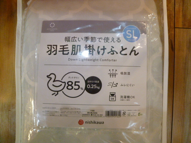 | 商品名 | ■未使用品 西川 SEVENDAYS 幅広い季節で使える羽毛肌掛けふとん シングルロング グレー/ダウン85%/羽毛掛け布団/ダウンケット■ |