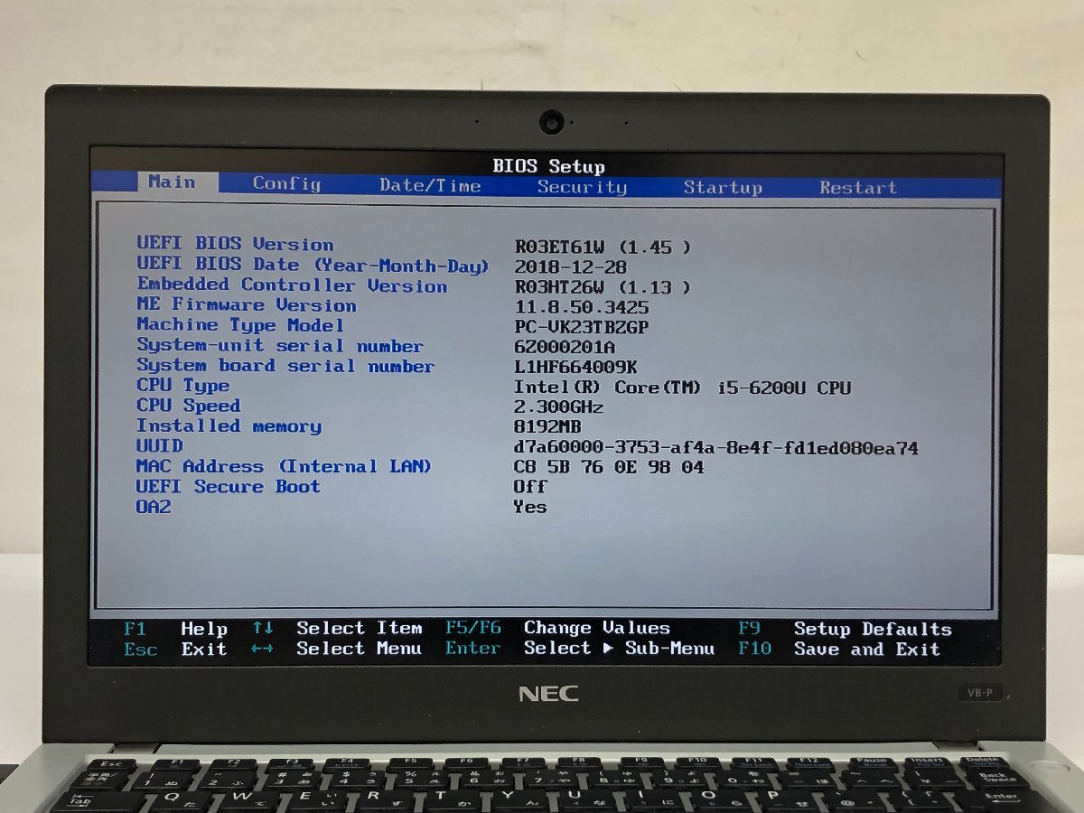 ジャンク/ NEC PC-VK23TBZGP Intel Core i5-6200U メモリ8.19GB ストレージ無し 【K20483】