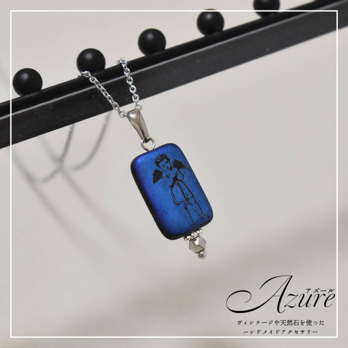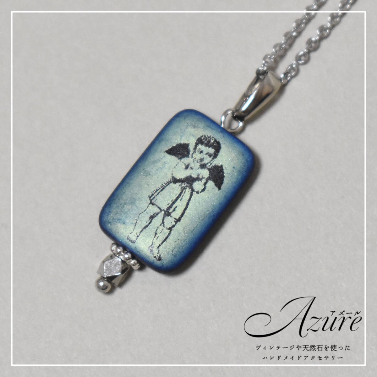 ■ レクタングル メタリックプリント ネックレス<天使> ■
