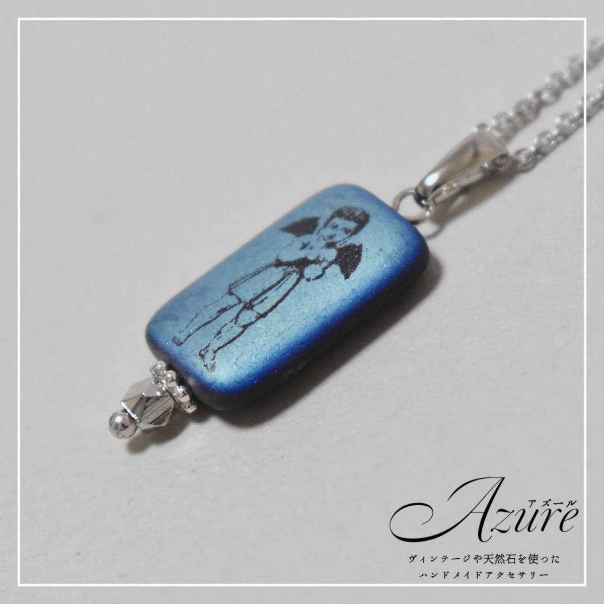 メタリック加工が施され、黒でプリントされたチェコビーズをトップにしたネックレスです。角度によって色味は変化し、また表面裏面で色が若干異なるためリバーシブルでもお楽しみいただけます。 天使/トカゲそれぞれのデザインで出品していますので、良ければご覧ください。 ■メイン素材 ガラスビーズ ■サイズ ビーズ:約1.9×1.2cm チェーン:約40cm+アジャスタ5cm ★ ツイッター(@Azure_Annsparts) ★ リットリンク:https://lit.link/azureazure ★他にも出品しています。マイ・ブースをご覧下さい。★ もしくは検索窓から「Azure リング」「Azure ブルー」などの項目で検索してください。 ★複数落札の場合、落札後に必ず落札者様より「おまとめ取引」を設定お願いいたします。設定していない場合、それぞれに送料が発生する可能性があります。 ★イメージ写真に使用した小物やトルソー、参考用の色違い作品等は落札物に含まれません。タイトル名の品物のみの落札となります。 |