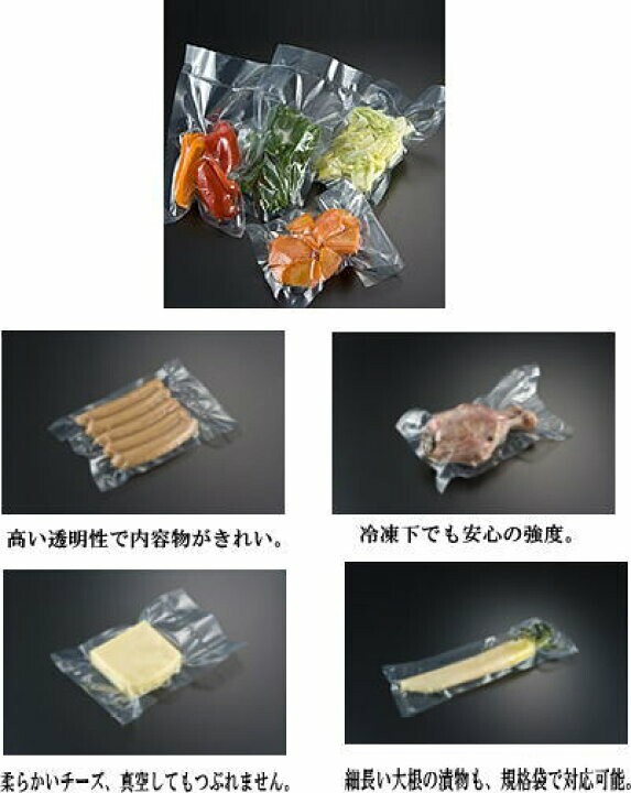 ※フードセイバーのような袋内側のイボイボで吸い込み力の弱さを補っている家庭用真空包装機では、十分な密封力が得られない可能性がございます