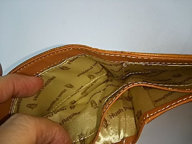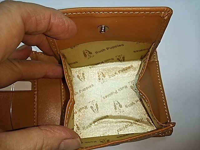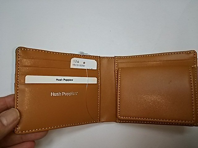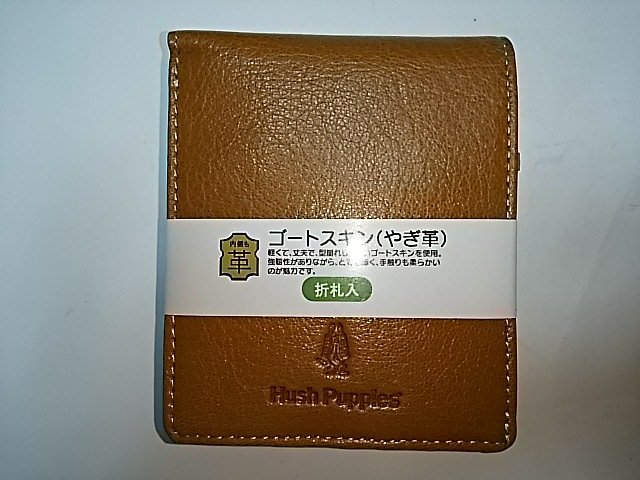 ハッシュパピー 新品タグ付き ゴート(山羊革)二つ折り財布です。シンプルなデザインです。カードが6枚入ります。格安で出品します。
