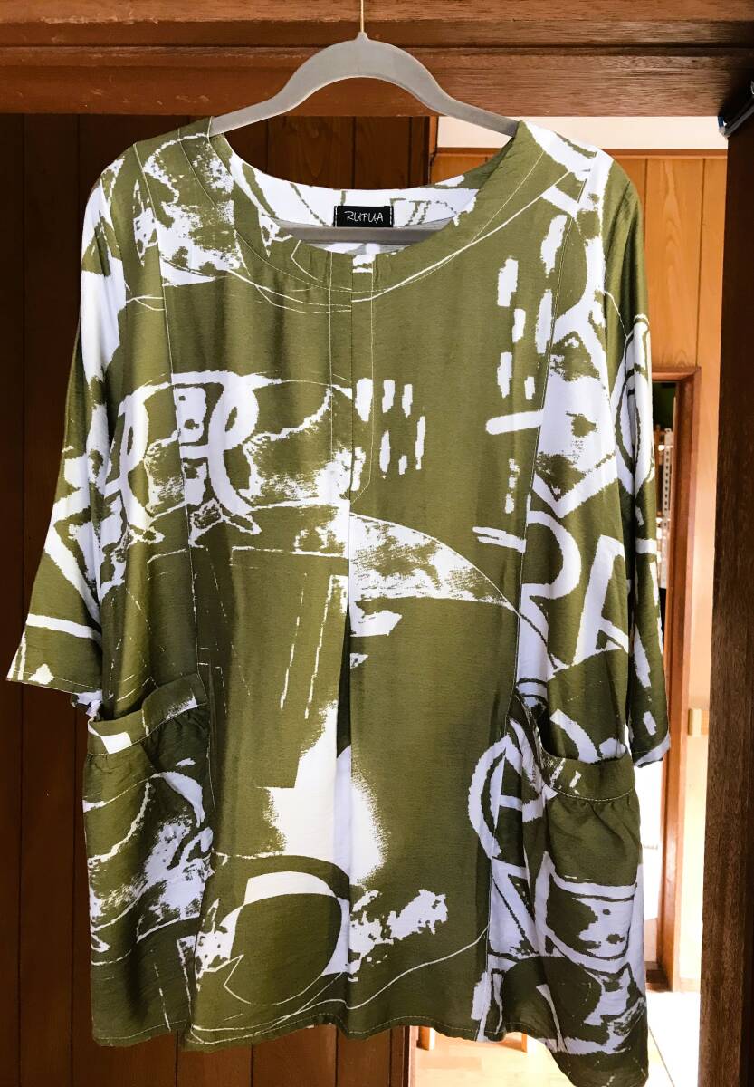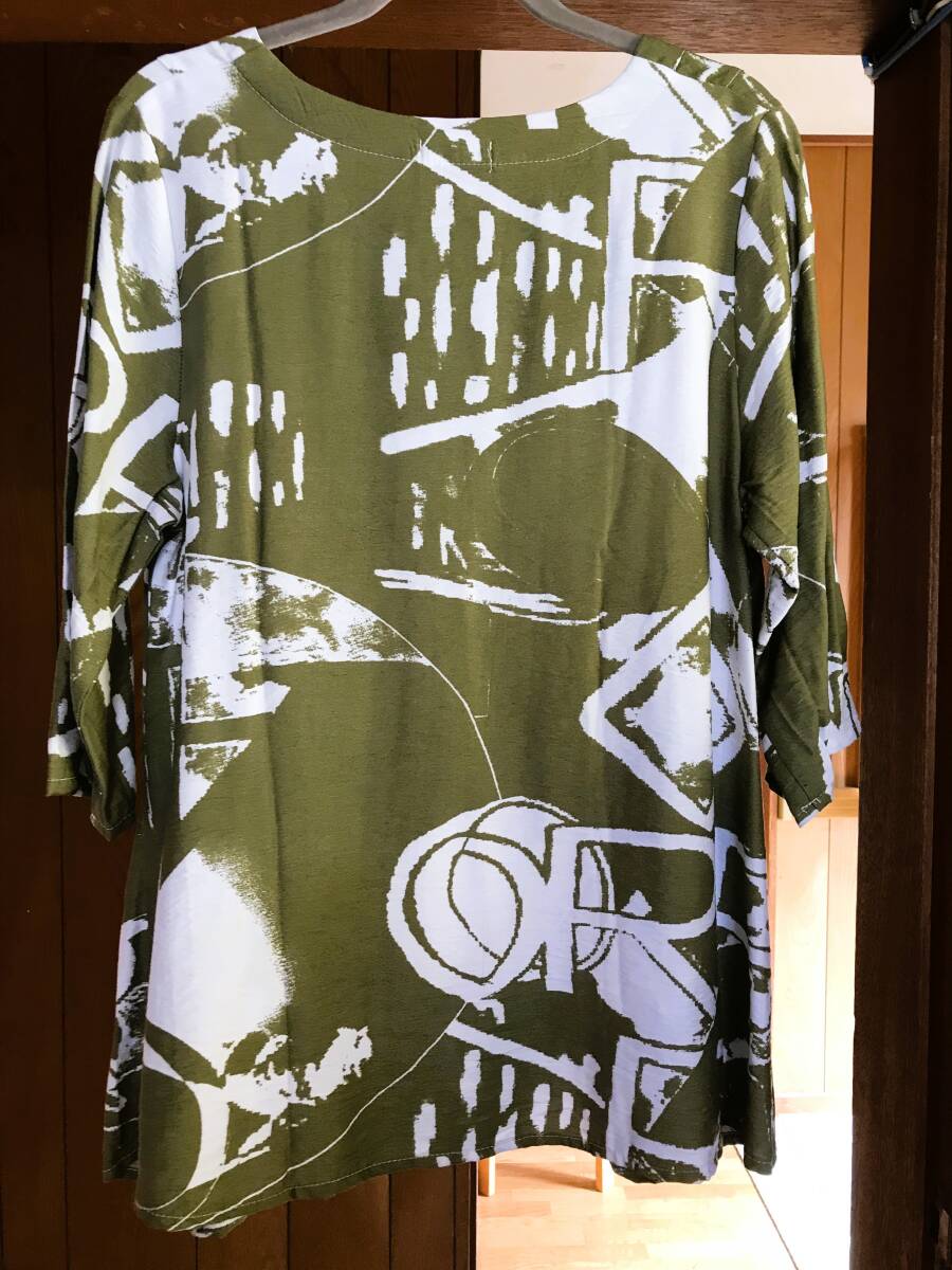 前身頃の中心が箱ひだになっております。 伸縮性はありませんので、 下記のサイズをチェックされてください。 <サイズ> 身幅:51cm 着丈:68cm 肩幅:40cm <コンディション> 未使用ですが、長期自宅保管しておりました。 ダメージらしきものは見当たりませんが、 ご理解ある方にご検討頂きたいと思います。 よろしくお願いいたします。 - カラー: オリーブグリーンとホワイトのグラフィックデザイン - スタイル: 五分袖 - ブランド: RIPUA - デザイン: アブストラクトなパターン - シルエット: リラックスフィット ご覧いただきありがとうございます。 カラー...グリーン系 汚れ・破れ・臭いなど...なし 柄/デザイン...プリント/ロゴ