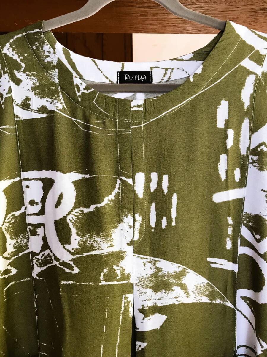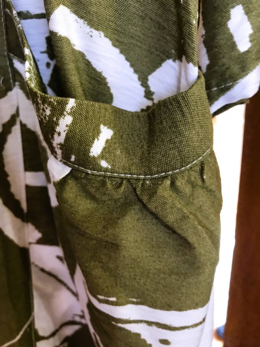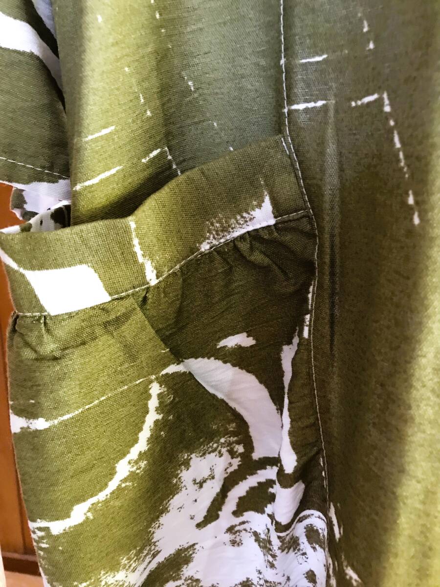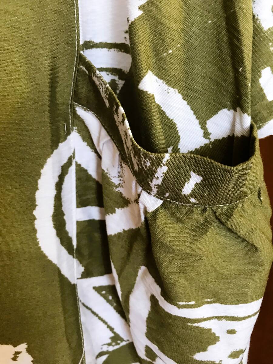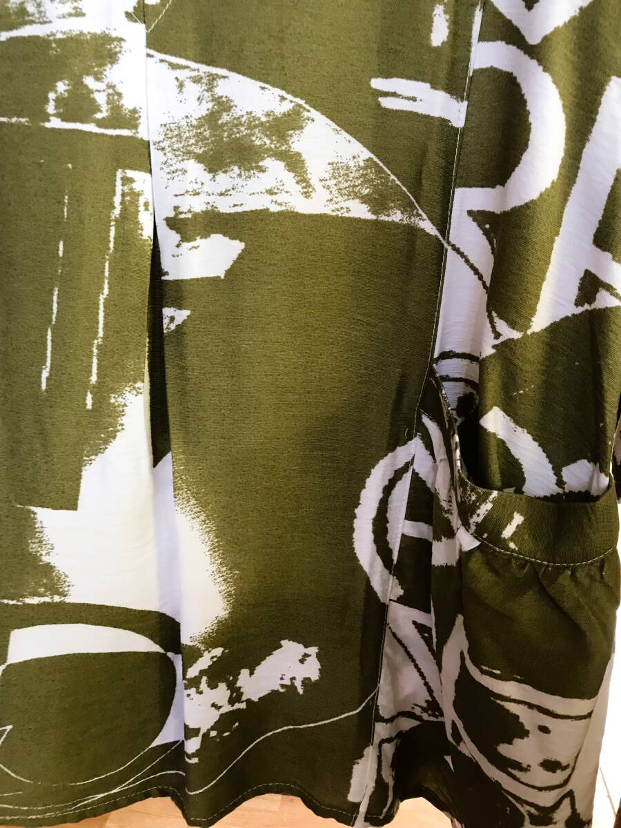 <商品説明> オリーブグリーンとホワイトのアブストラクトパターンが特徴の