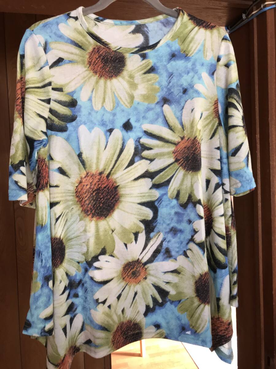 マーガレット柄の五分袖チュニック