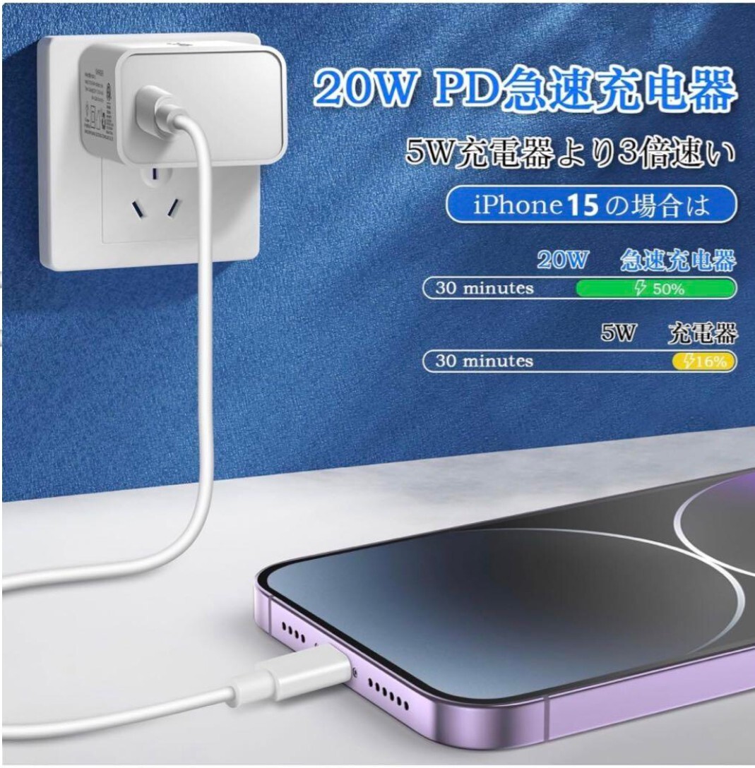超急速充電:最大端末に応じて出力が5V/3A、9V/2.22Aと可変し、iPhoneなどのスマートフォンから、 SWITCH などのゲーム機まで幅広く高速充電できます。20W出力で、iPhone 15 / 15 Proを急速充電可能です。一般的な5W出力の充電器に比べ、最大3倍速く充電できます。※iPhone 15を0%から30分充電した場合との比較