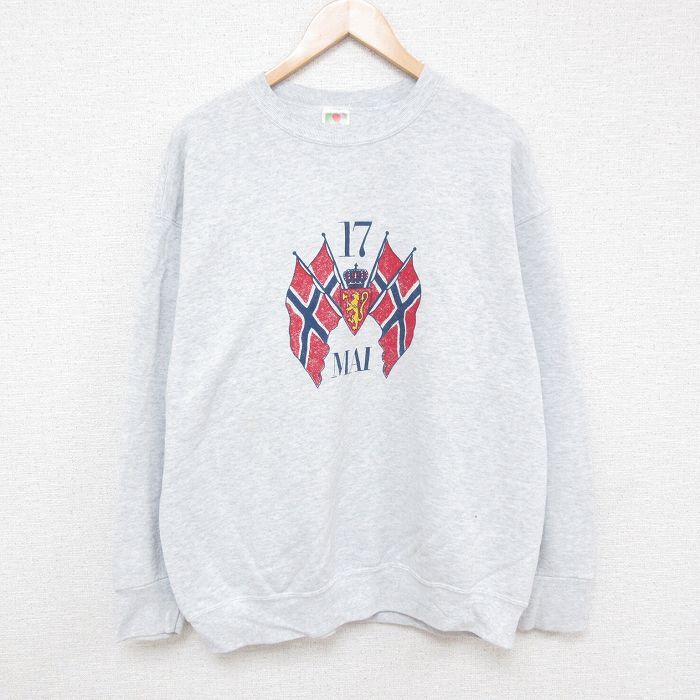 【商品名】 XL★古着 フルーツオブザルーム 長袖 スウェット メンズ 00年代 00s 国旗 クルーネック グレー 霜降り