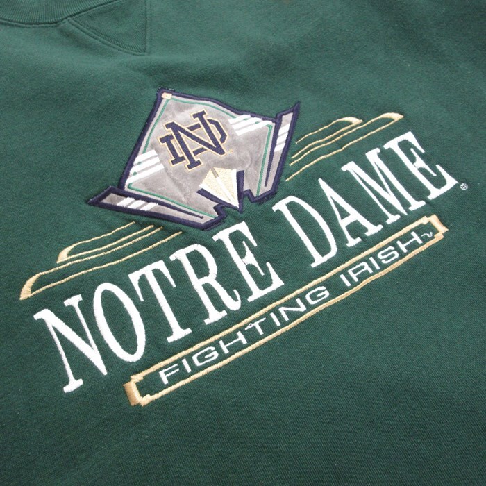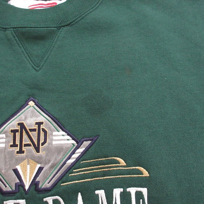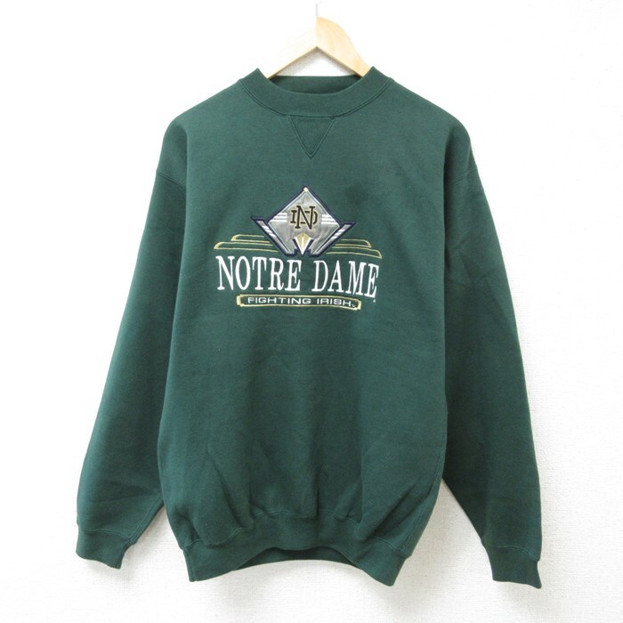 【商品名】 M★古着 長袖 スウェット メンズ 00年代 00s ノートルダム IRISH 刺繍 クルーネック 濃緑
