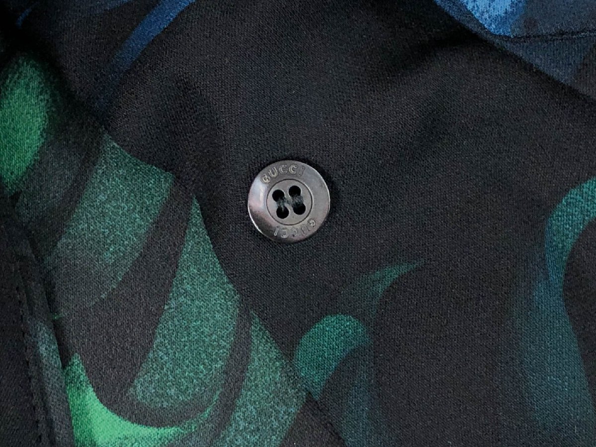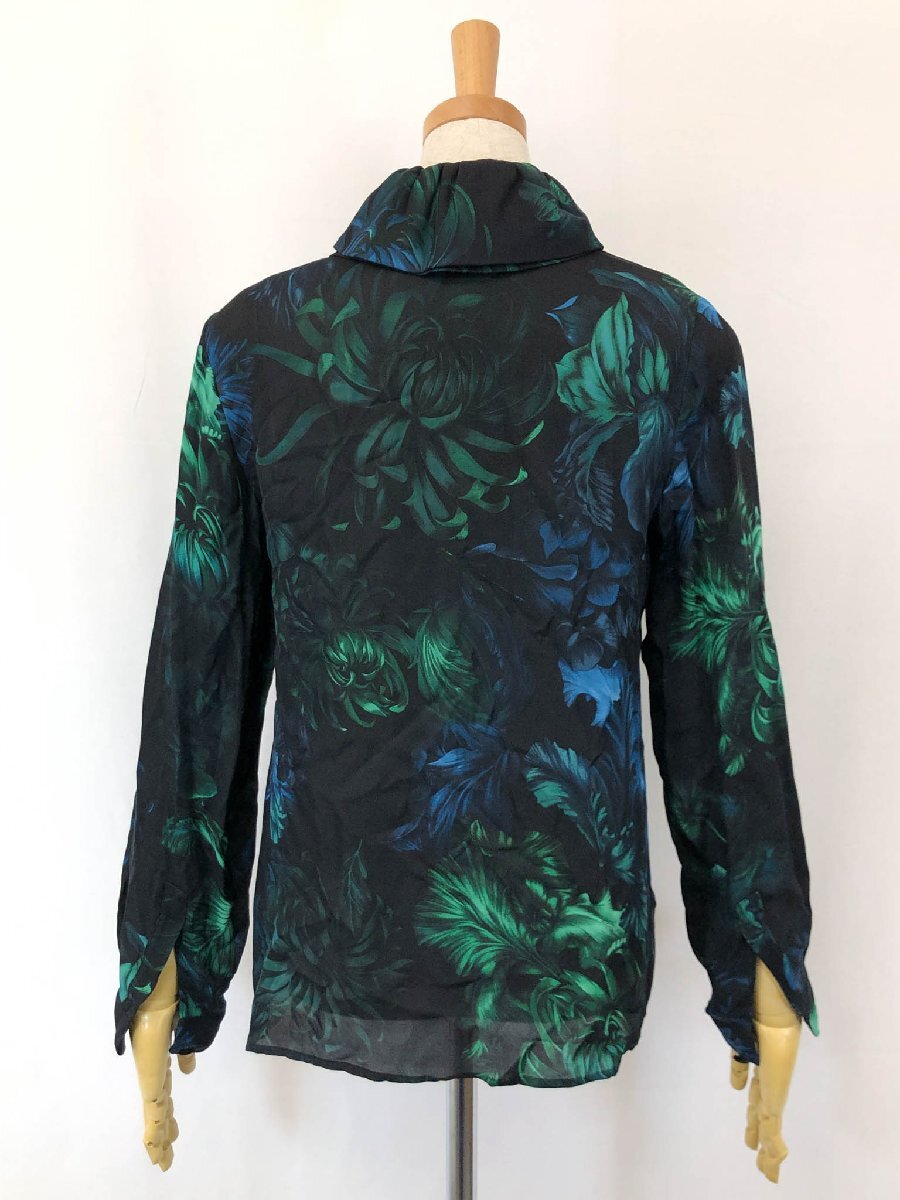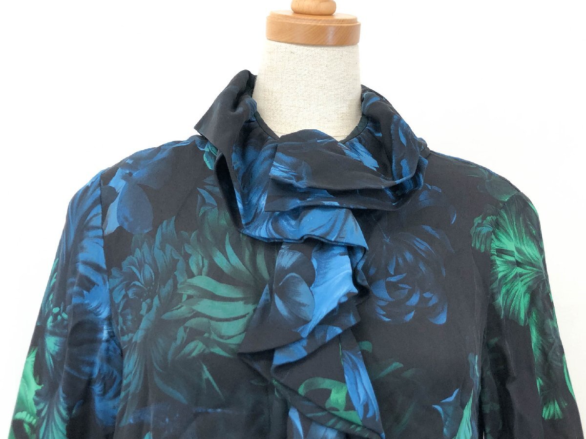 超美品【グッチ GUCCI】300585 ZX522 シルク100% フラワープリント 長袖 フリルブラウス シャツ (レディース) 36 黒系 伊製 ◇17LK2501◇