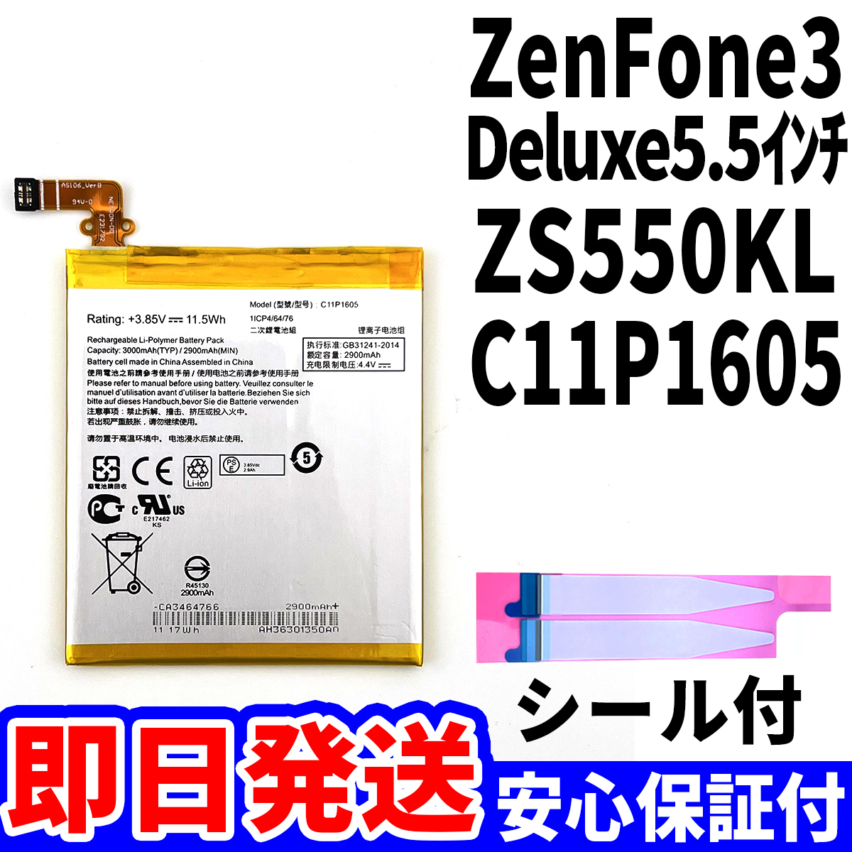 ★ASUS ZenFone3 Deluxe 5.5インチ バッテリー交換 ZS550K C11P1605 電池パック交換キット battery repair 電池交換 バッテリー単品 工具なし★