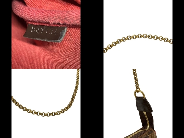 デザイン:ダミエ柄はモノグラムと並んで人気を誇ります。ゴールドのプレートとハンドストラップが、可愛らしさと華やかさを演出するバッグです。ハンドバッグ、クラッチバッグ、ショルダーバッグの3通りの使い方が可能で、機能性も抜群。携帯電話や財布が収まるちょうど良いサイズ感です。