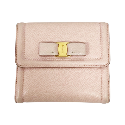 サルヴァトーレフェラガモ Salvatore Ferragamo 二つ折り財布 ウォレット 小物 金具 ヴァラリボン ピンク 22C911 レディース