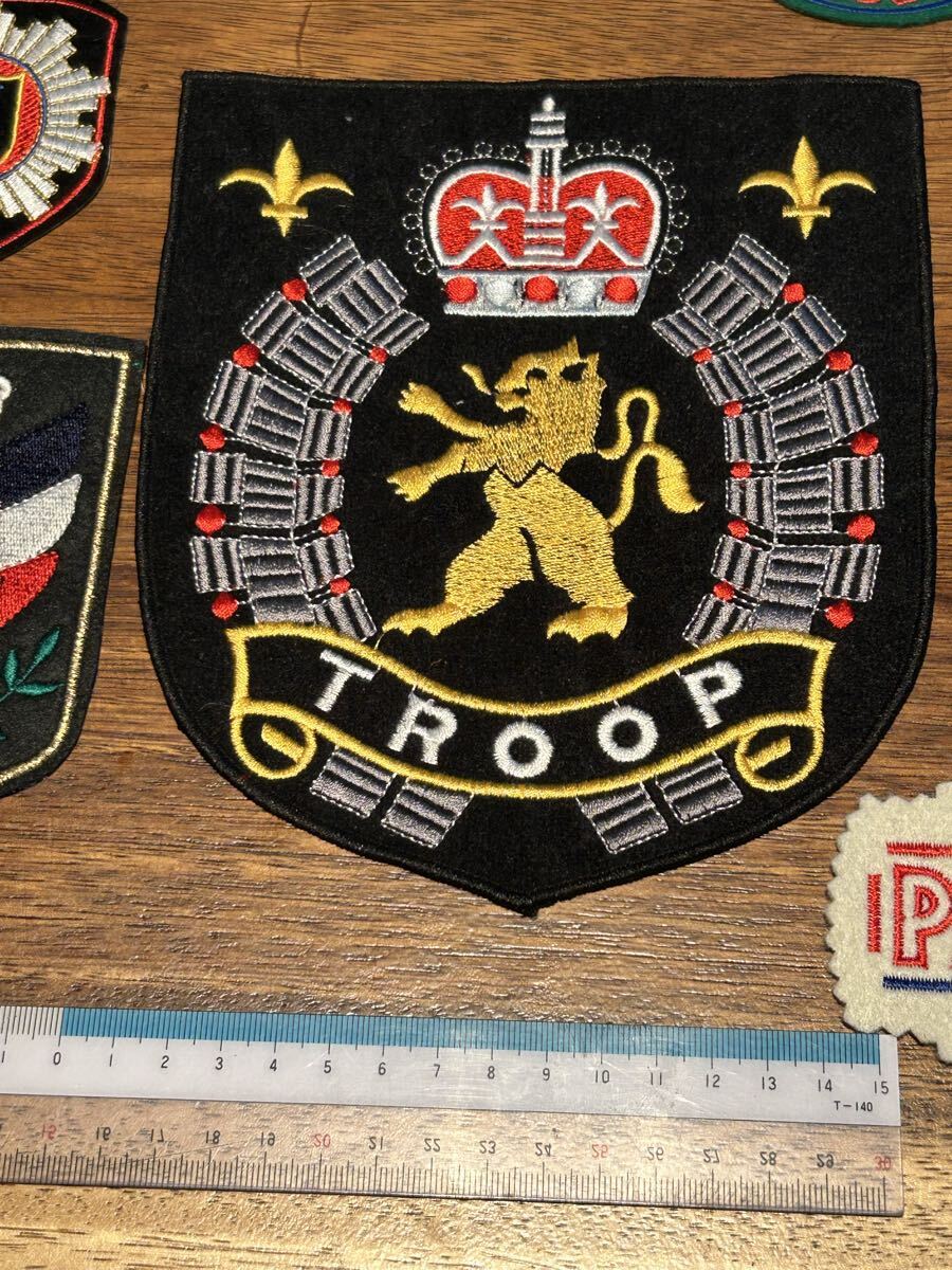 左下黒色のtroopのワッペンが16bm20cm程です。
