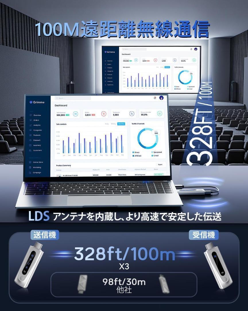 ワイヤレス hdmi 無線 送受信機セット hdmi 無線化 ワイヤレス 【技適認証取得】1080P@60Hz/5G+2.4G/100m無線伝送 小型 挿すだけで使える WIFI&設定不要 超低遅延 映像音声同期出力 LEDディスプレイ搭載 8台増設可能 収納に便利 テレビ/PC/Mac/Laptop/Window/カメラ/監視カメラなど多デバイス対応