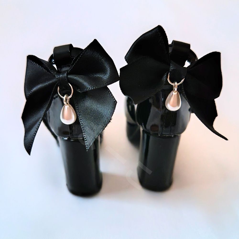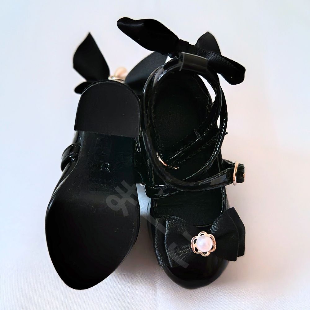 バックリボンがある珍しいデザインで動くたびにアクセントのフェイクパールが揺れてとても素敵なドールシューズです。