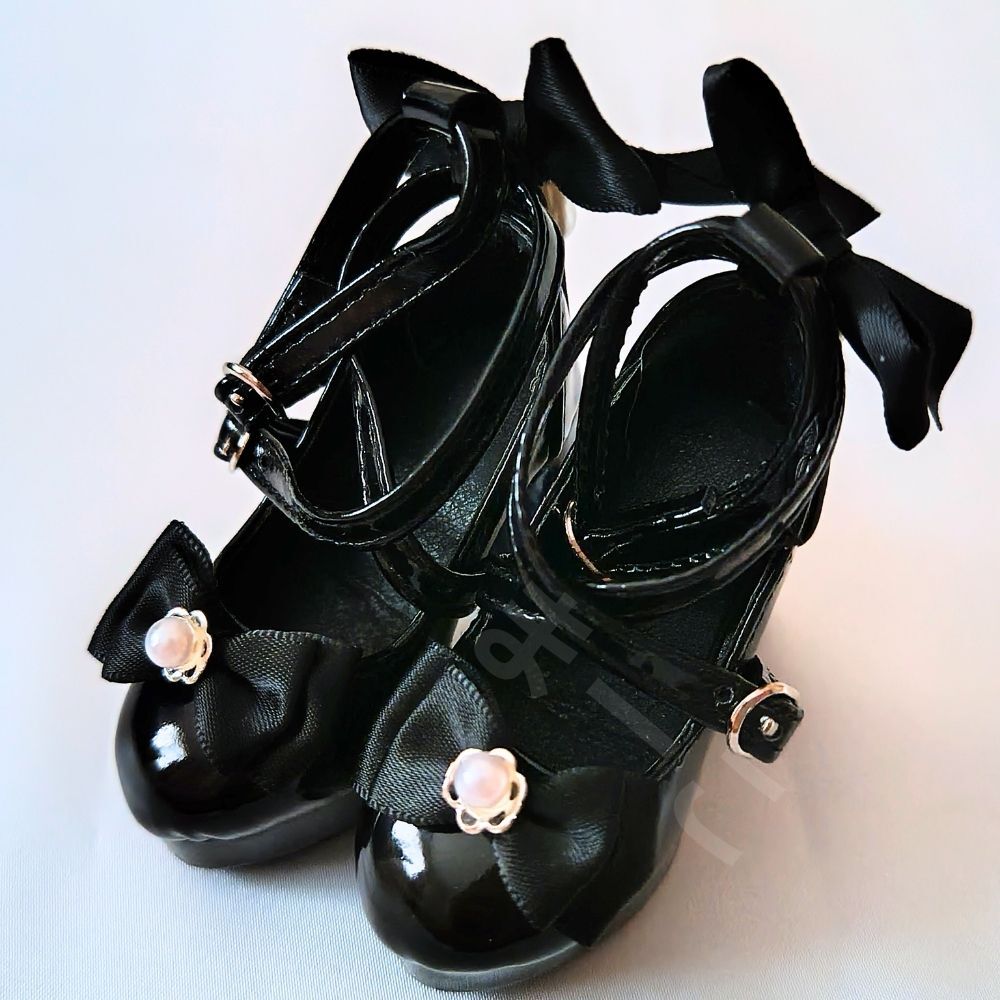 ドールシューズ 1/3 靴 DD SD スーパードルフィー 黒色 厚底靴 60㎝ BJD ブラック リボン 可愛い ストラップシューズ ロリータ クラシカル