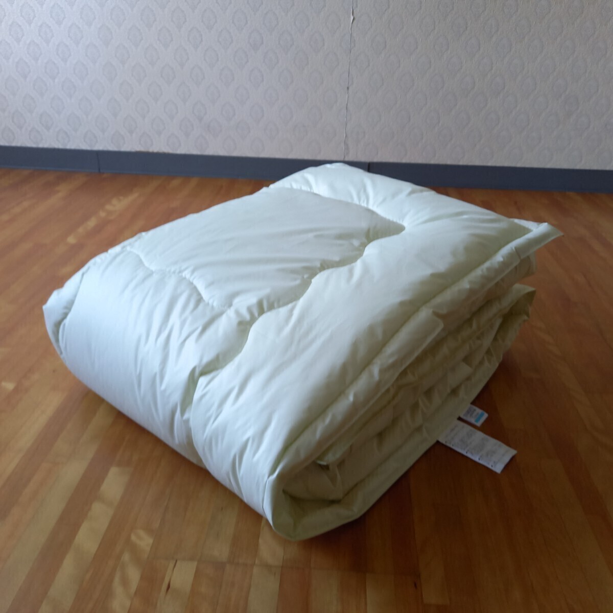 中わたは東洋紡 岩国工場で生産した極細ポリエステル繊維 シュレープを100%を使用しておりますので、羽毛のような保温性を実現し ほこりなどが少なく、体を包み込むようなドレープ性に優れております。
