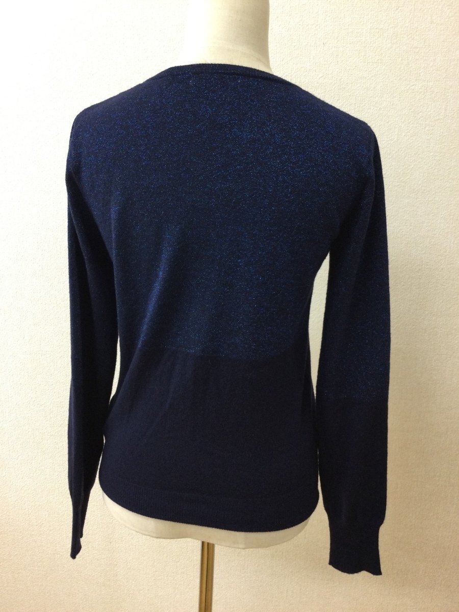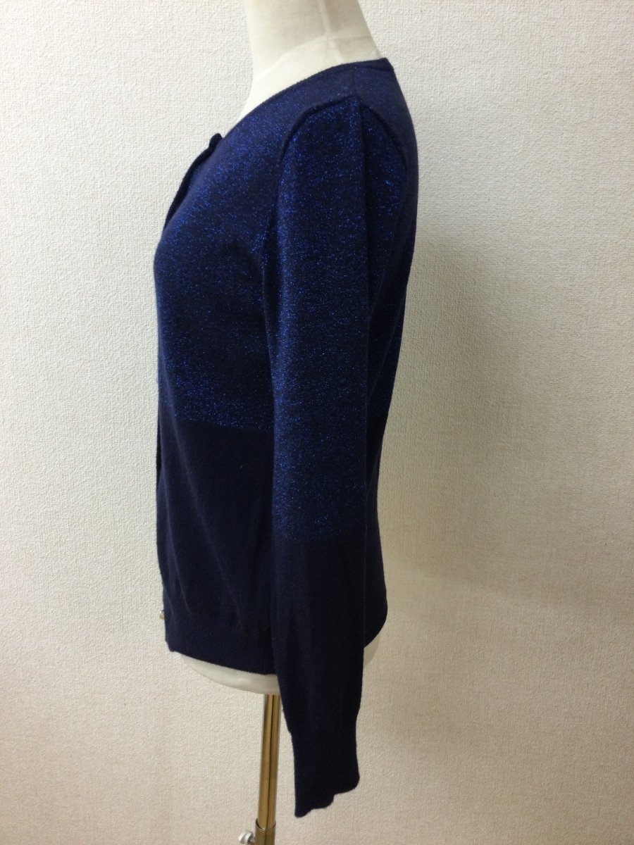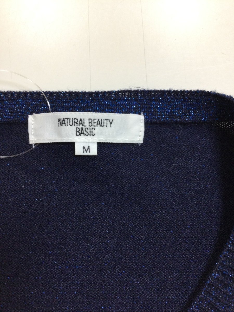 | 管理番号:10^134815 ナチュラルビューティーベーシック ネイビーニットカーディガン 上半身ラメ 表示サイズ:M 実寸(参考)