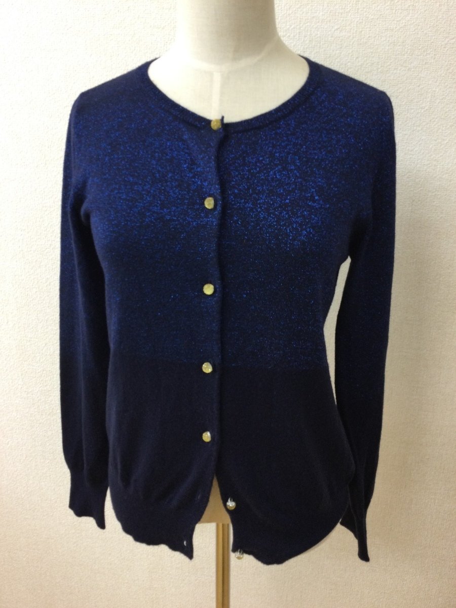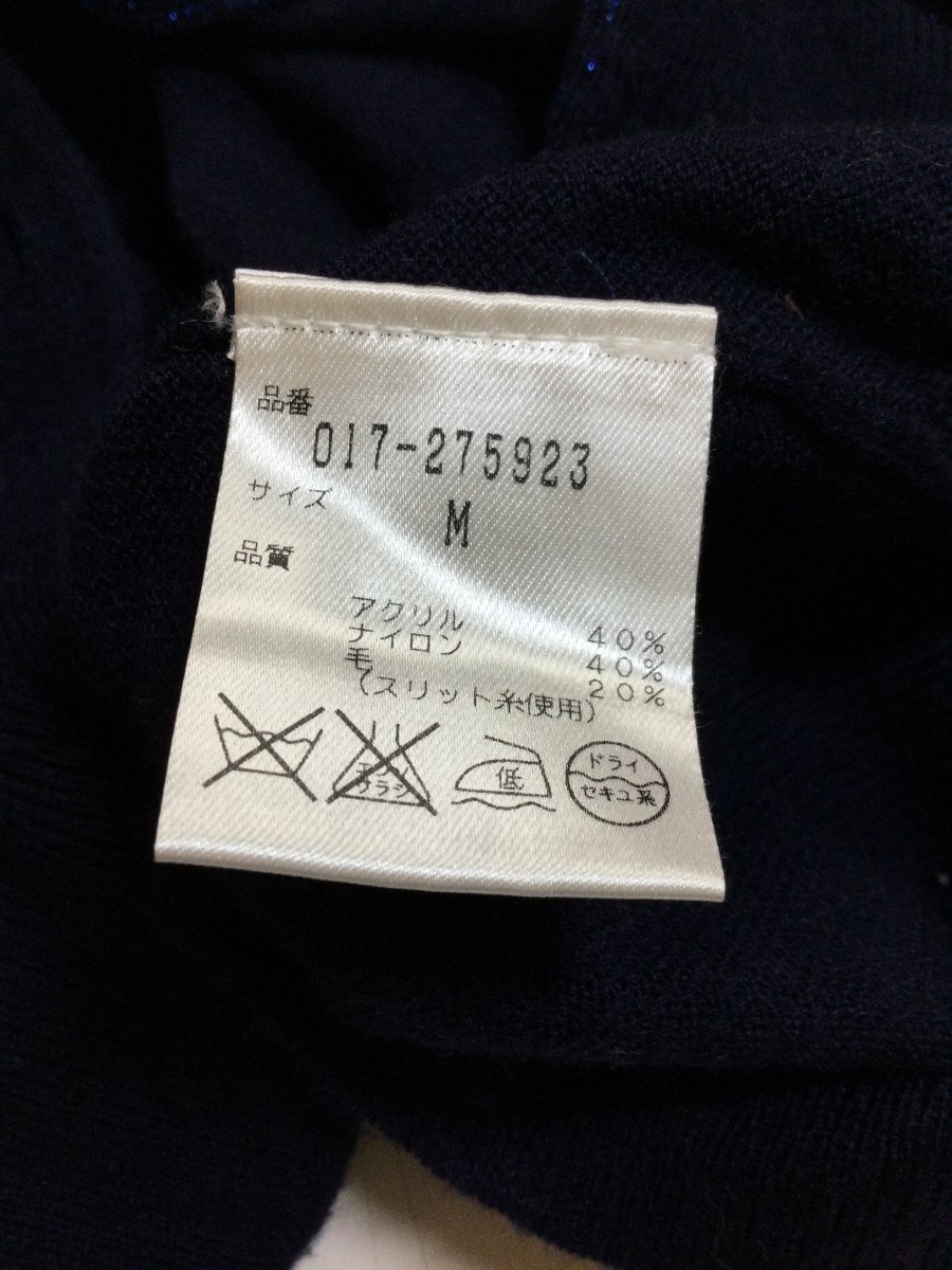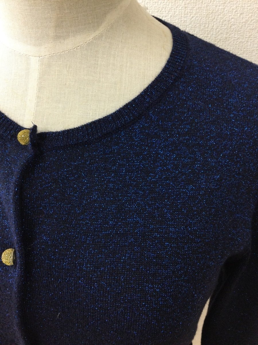| 管理番号:10^134815 ナチュラルビューティーベーシック ネイビーニットカーディガン 上半身ラメ 表示サイズ:M 実寸(参考)