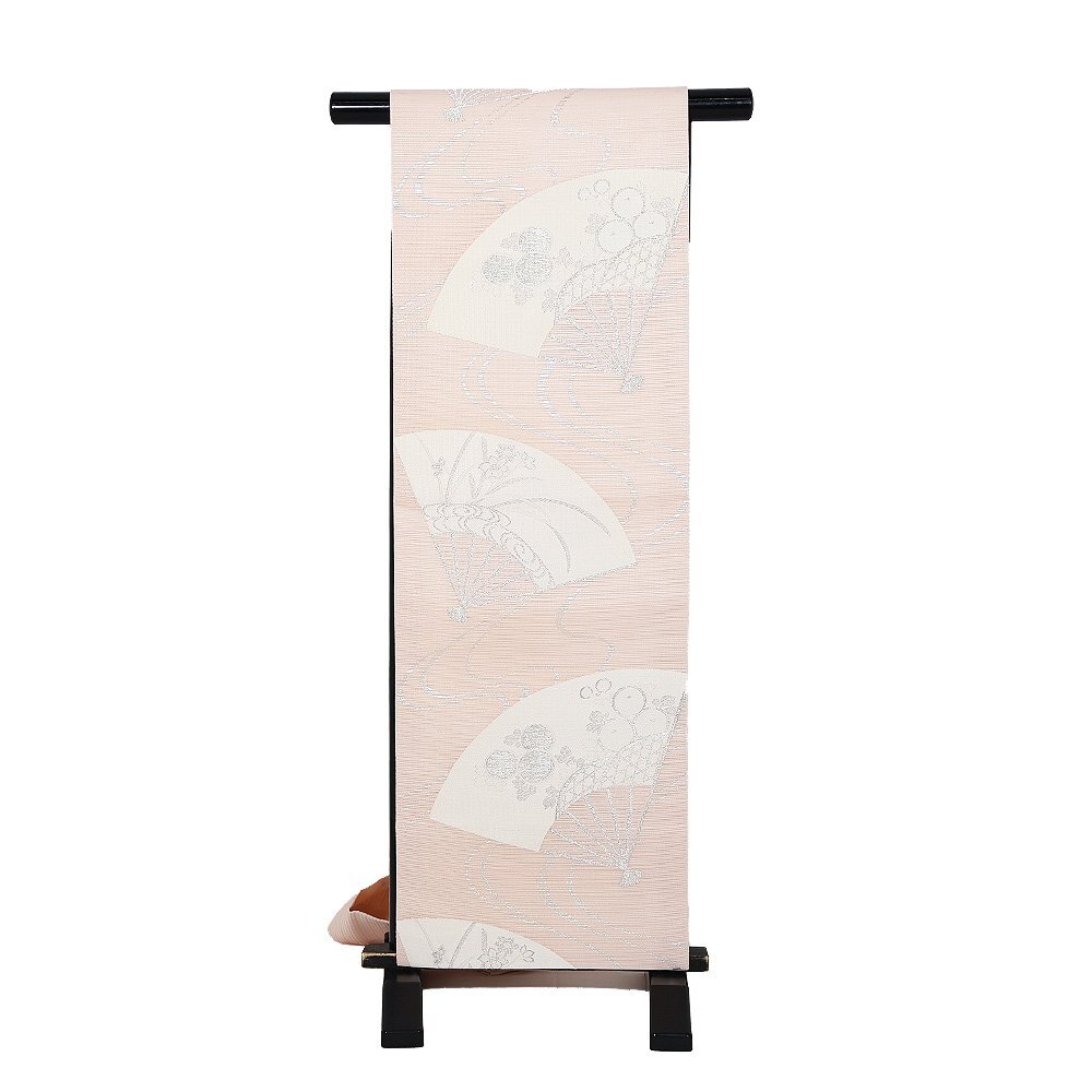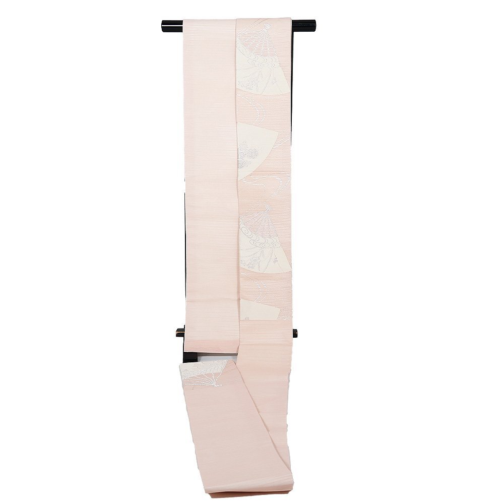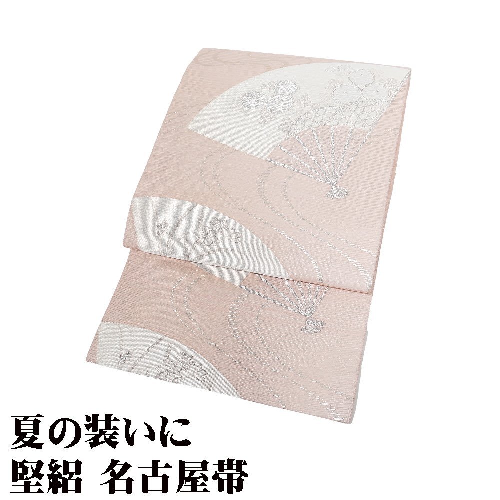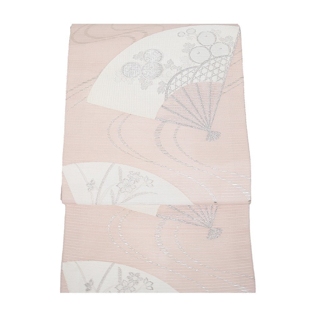 | 堅絽 名古屋帯 ピンク地 扇子 万寿菊・桔梗 仕立て上がり | |
