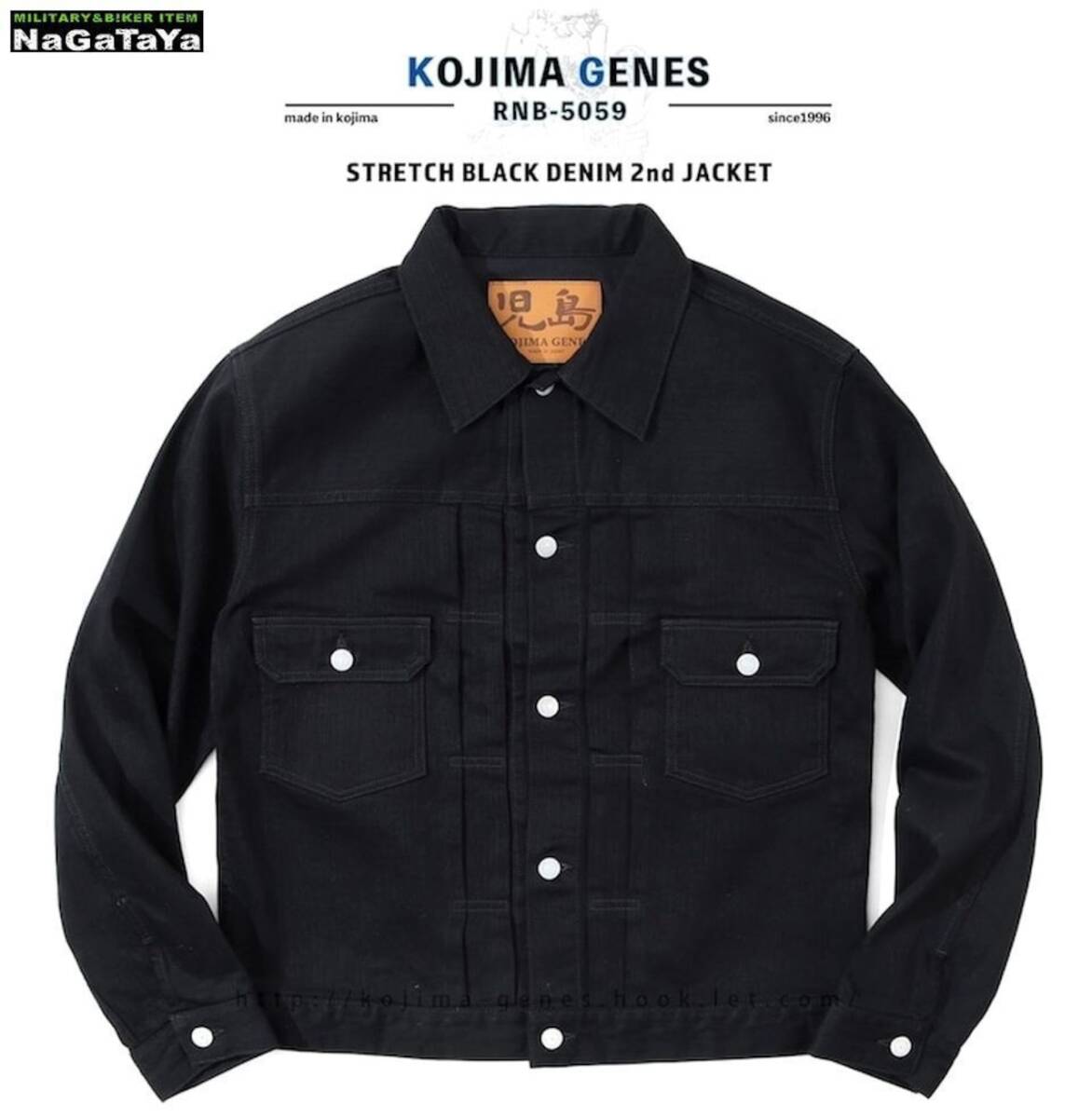 児島ジーンズ KOJIMA GENES ストレッチ スーパーブラック デニムジャケット 2ndタイプ rnb5059 XLサイズ 漆黒 日本製 MADE IN JAPAN