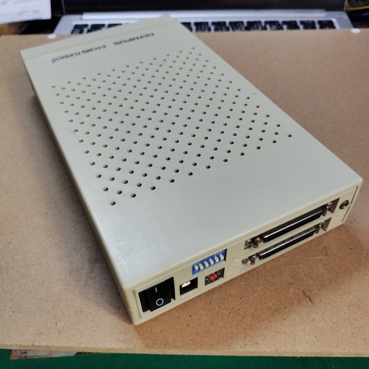 OLYMPUSのSCSI-MOドライブです。通電はします。動きが怪しいです。まともには動かない感じです。ただし、自作のホストを使っての動作確認です。