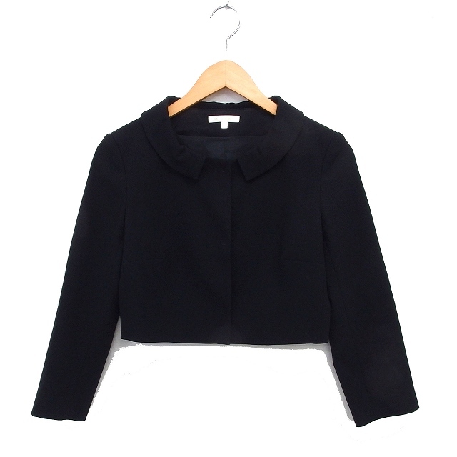 ポールカ PAULE KA ショート丈 ジャケット アウター 総裏地 スナップボタン 無地 36 黒 ブラック /NT23 レディース