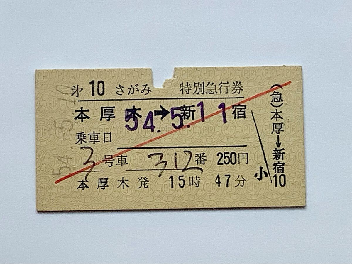 【商品】小田急電鉄 第10さがみ号 完全常備 特別急行券 (本厚木→新宿) 本厚木営業所発行 250円時代
