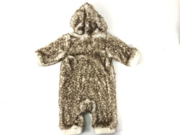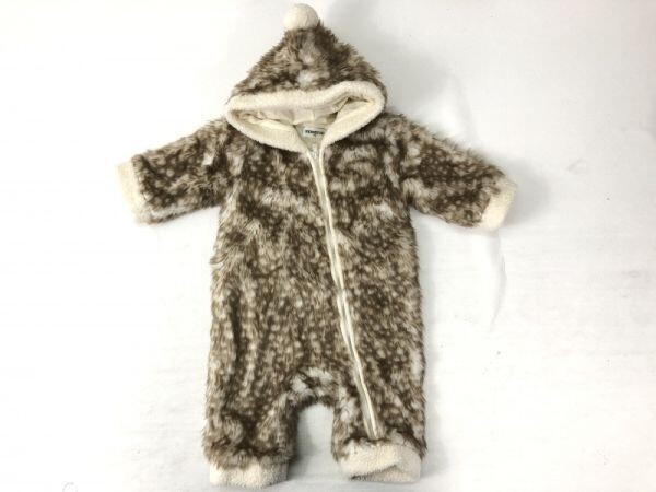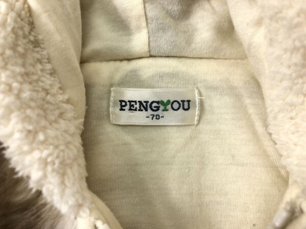PENG YOU キッズ 子供服 ボアフリース フェイクファー アニマル柄 総柄 ポンポン付き フード ロンパース つなぎ 斜めジップ 70cm 茶系 です。