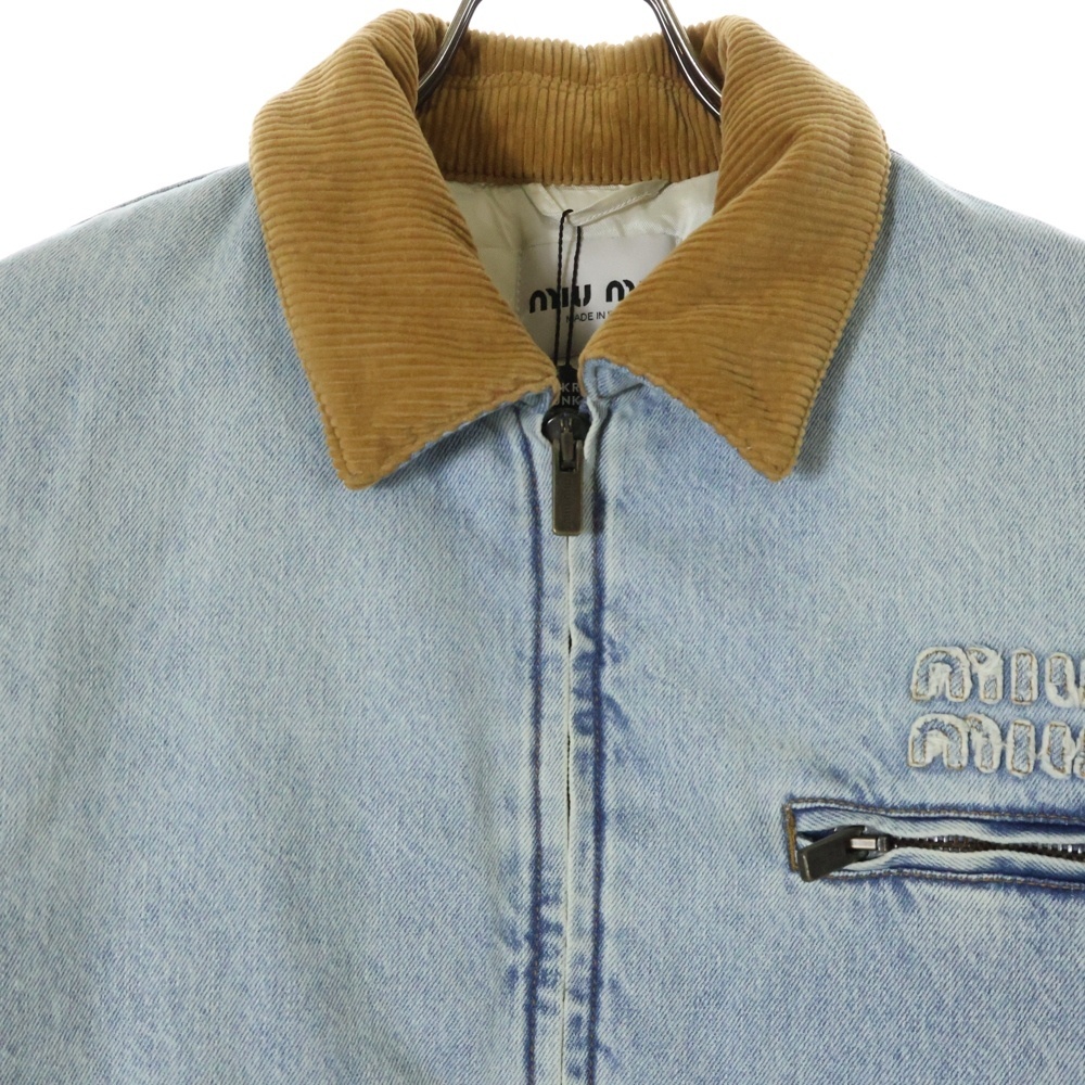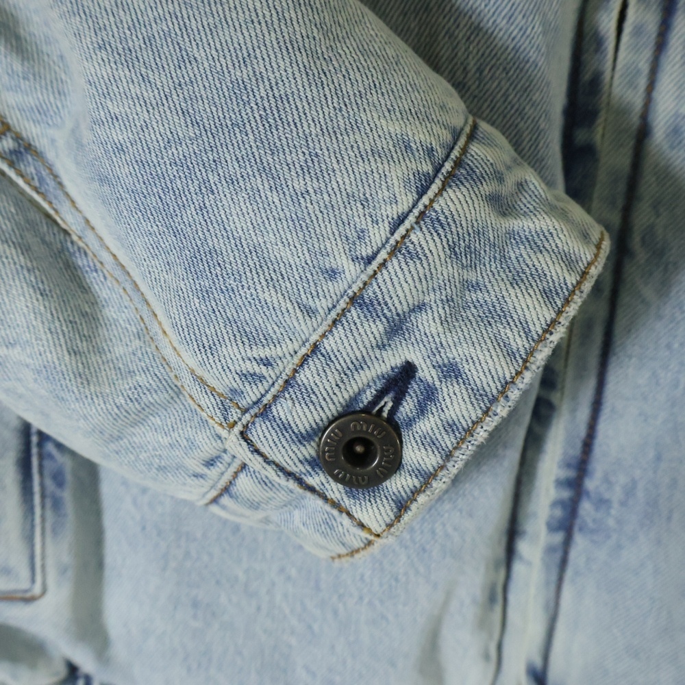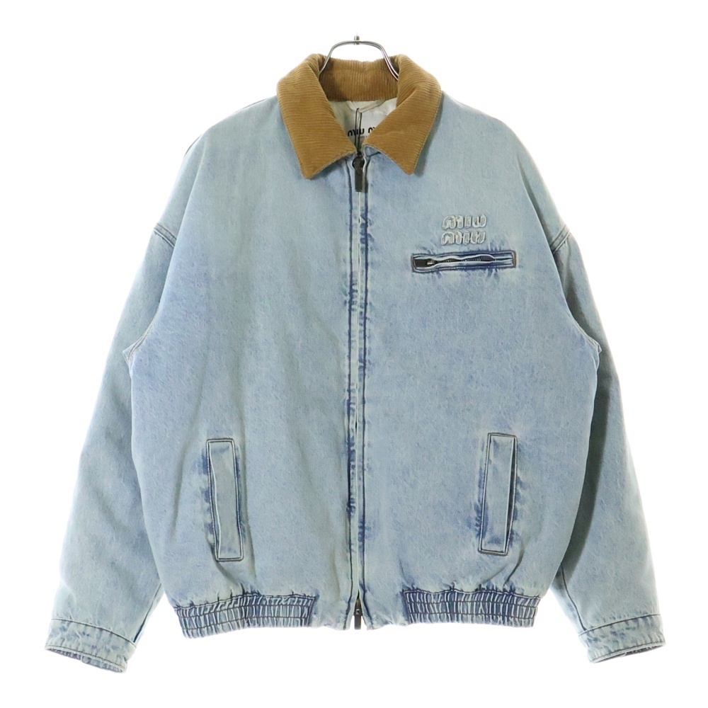 miumiu ミュウミュウ GWB221 ユーズド加工 ロゴ刺繍 中綿 デニムブルゾンジャケット インディゴ