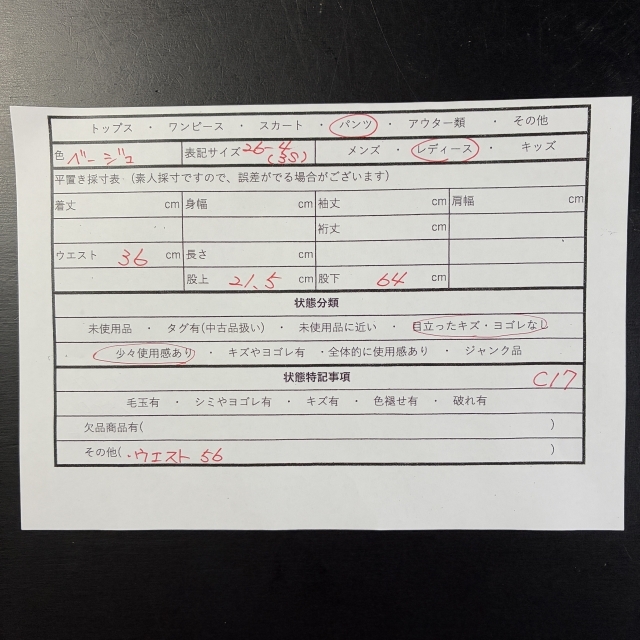 C17◇BRAPPERS | ブラッパーズ ストレッチパンツ ベージュ レディース 26-4(3S)サイズ 中古品