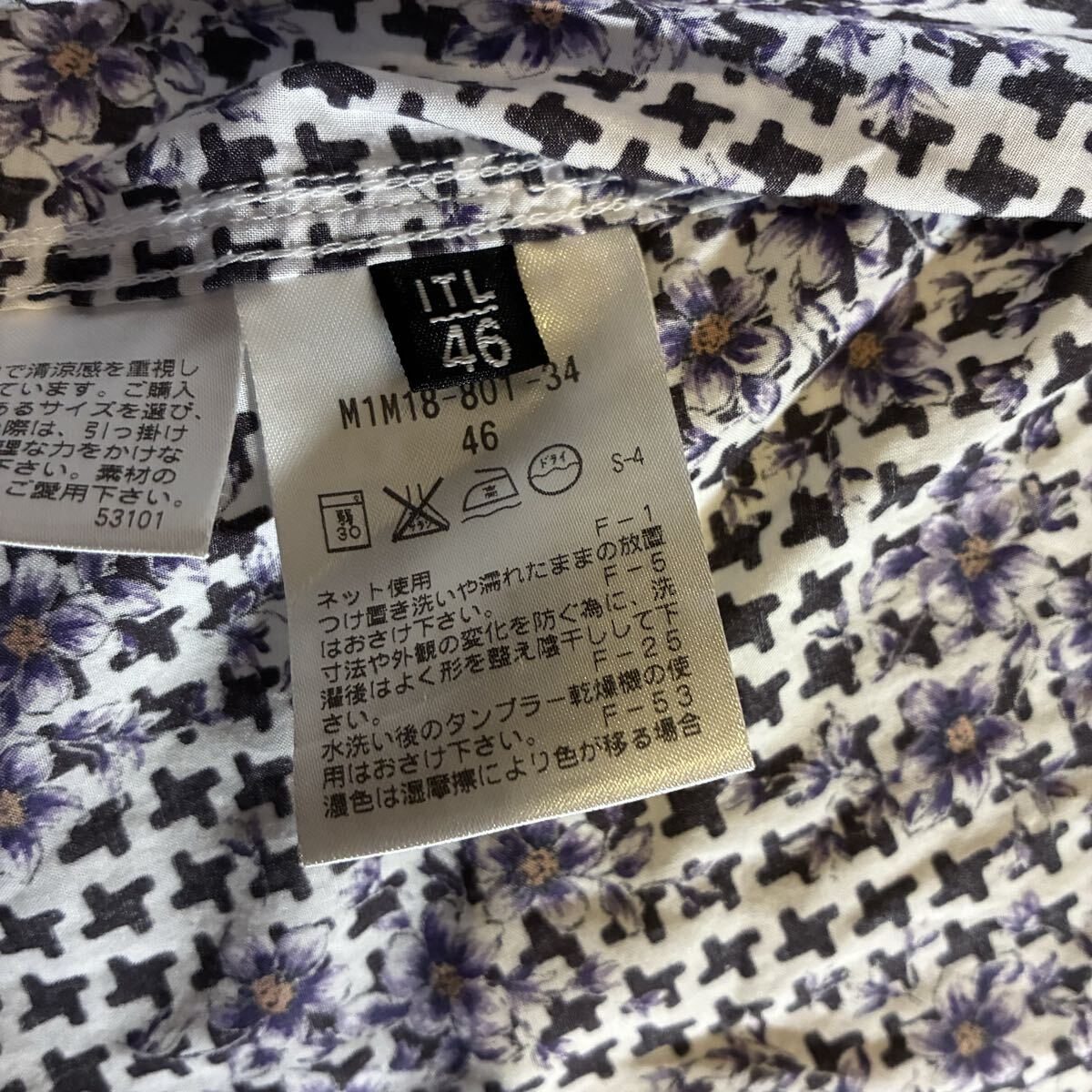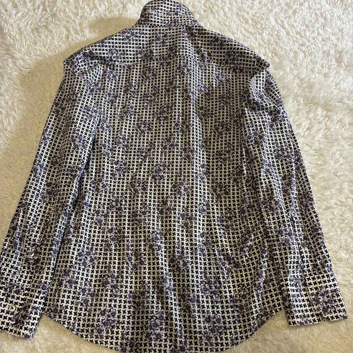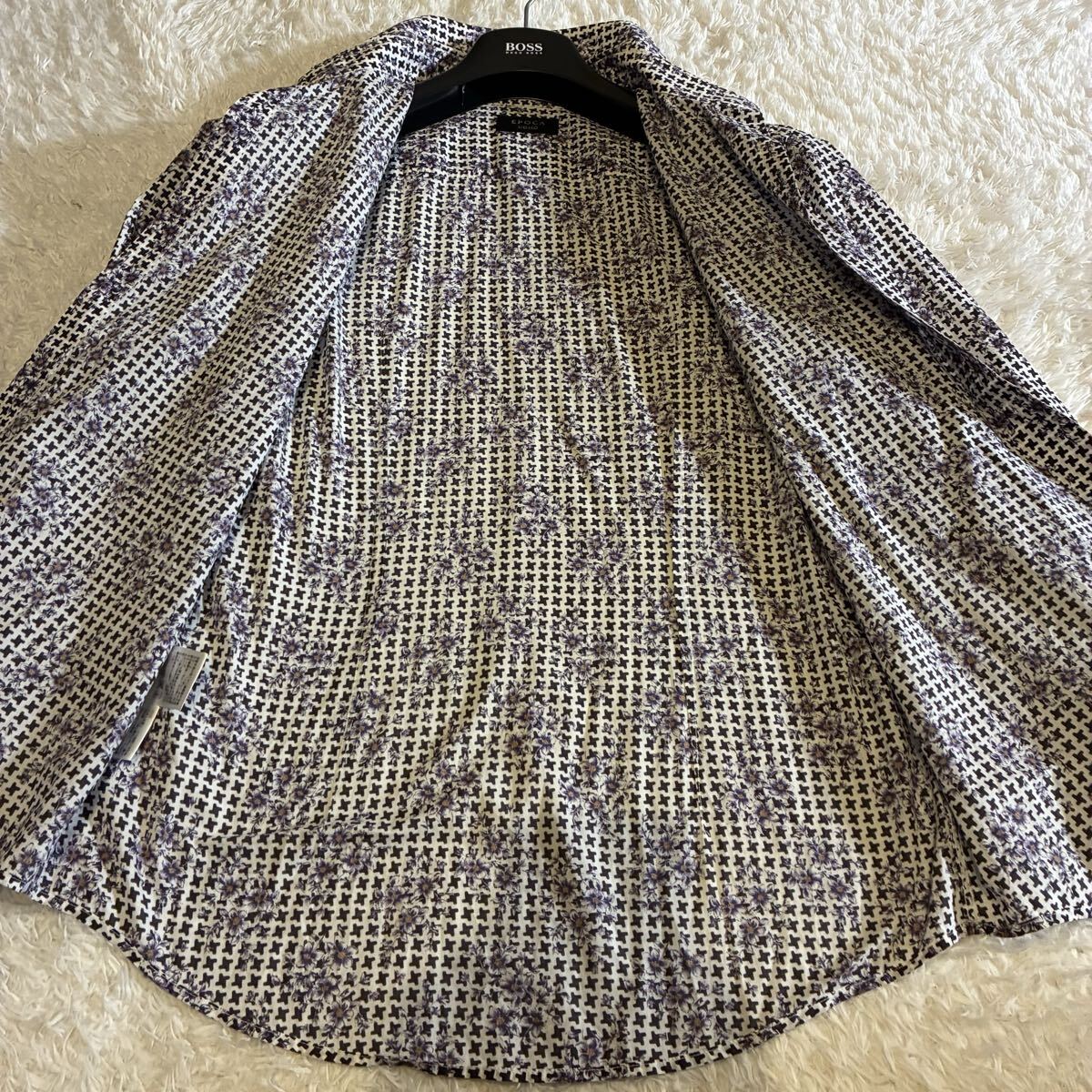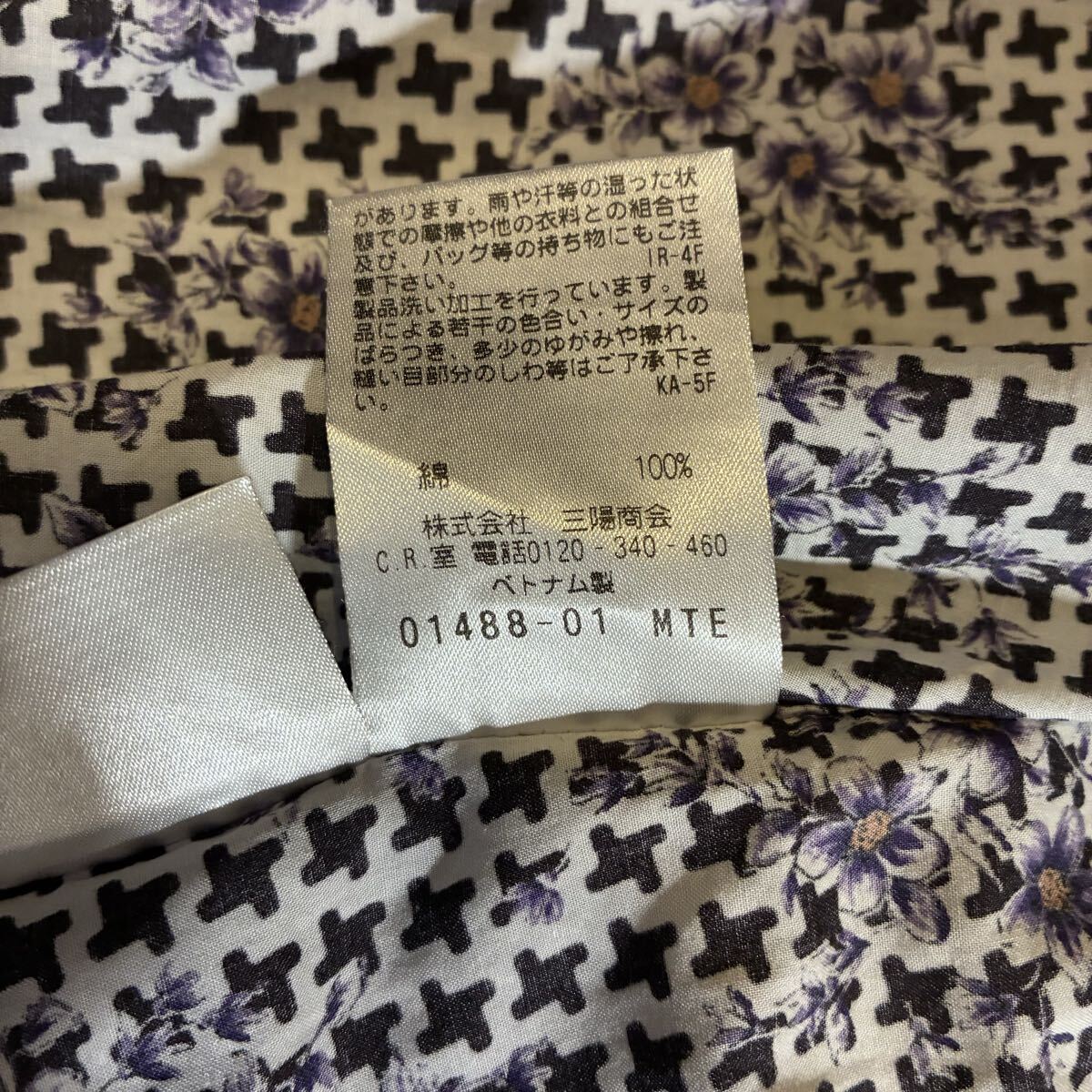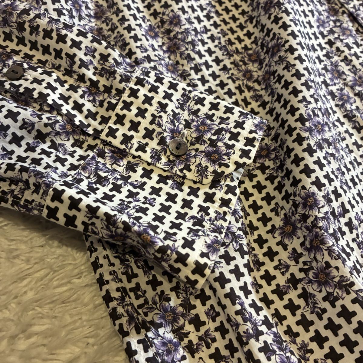 パープルの花柄が重ねられたエレガントなデザインで、上質なコットン素材を使用し、高級ブランドらしい洗練された仕上がりが特徴です。