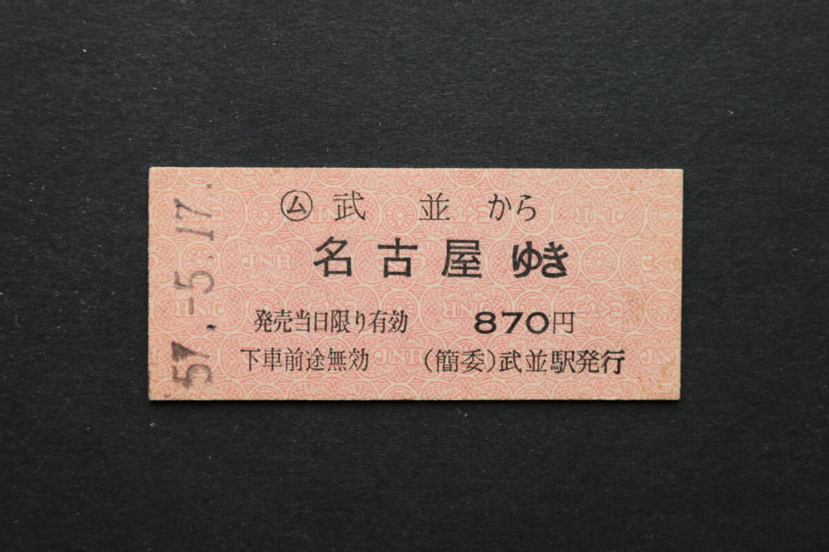 乗車券 (ム)武並から 名古屋ゆき 870円