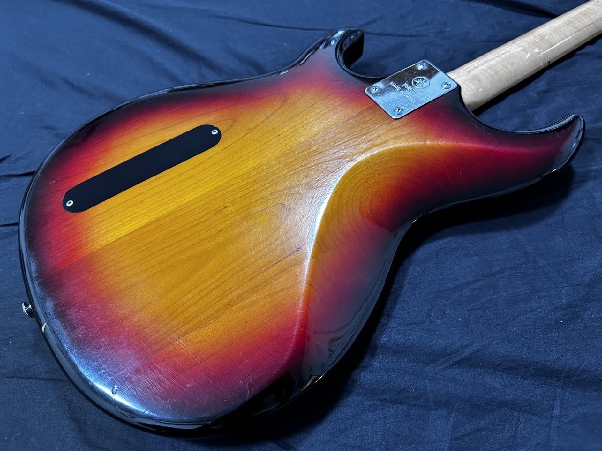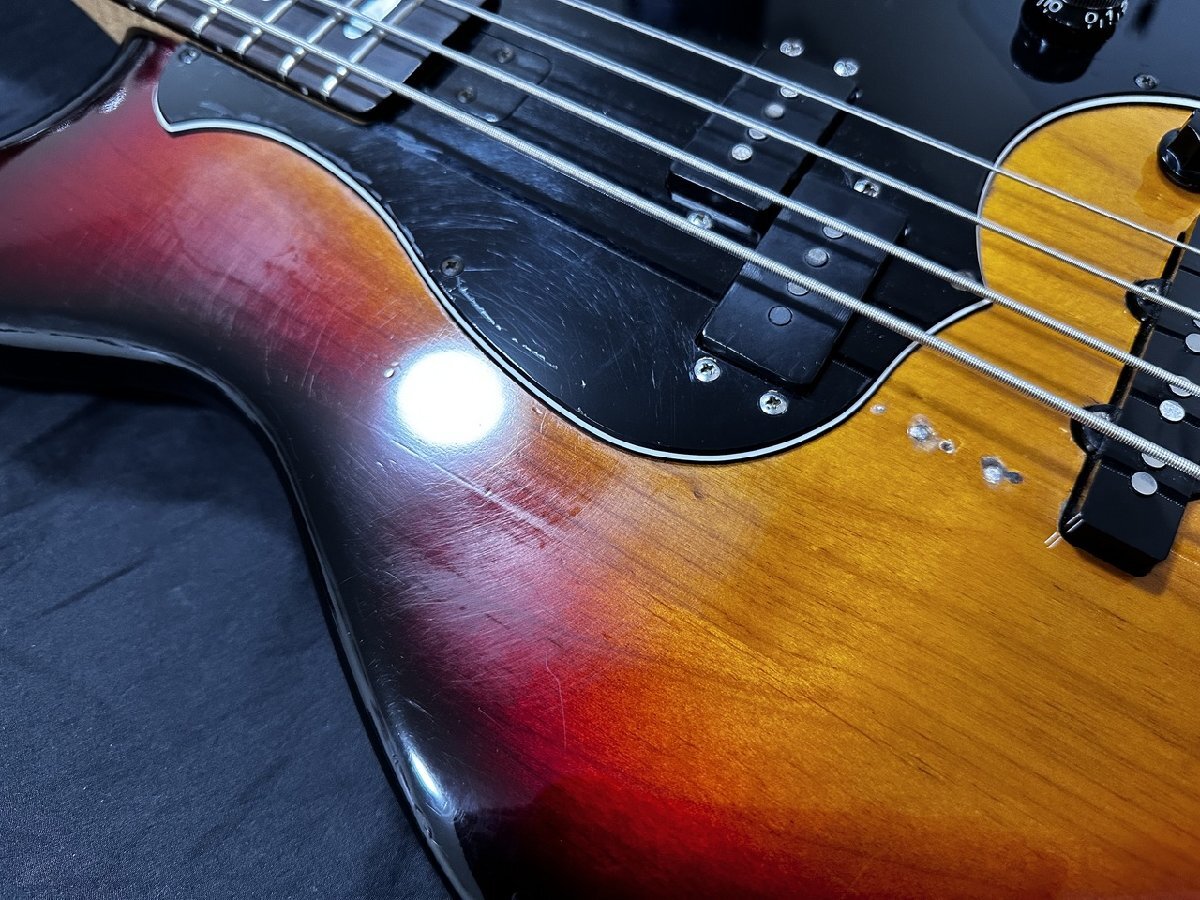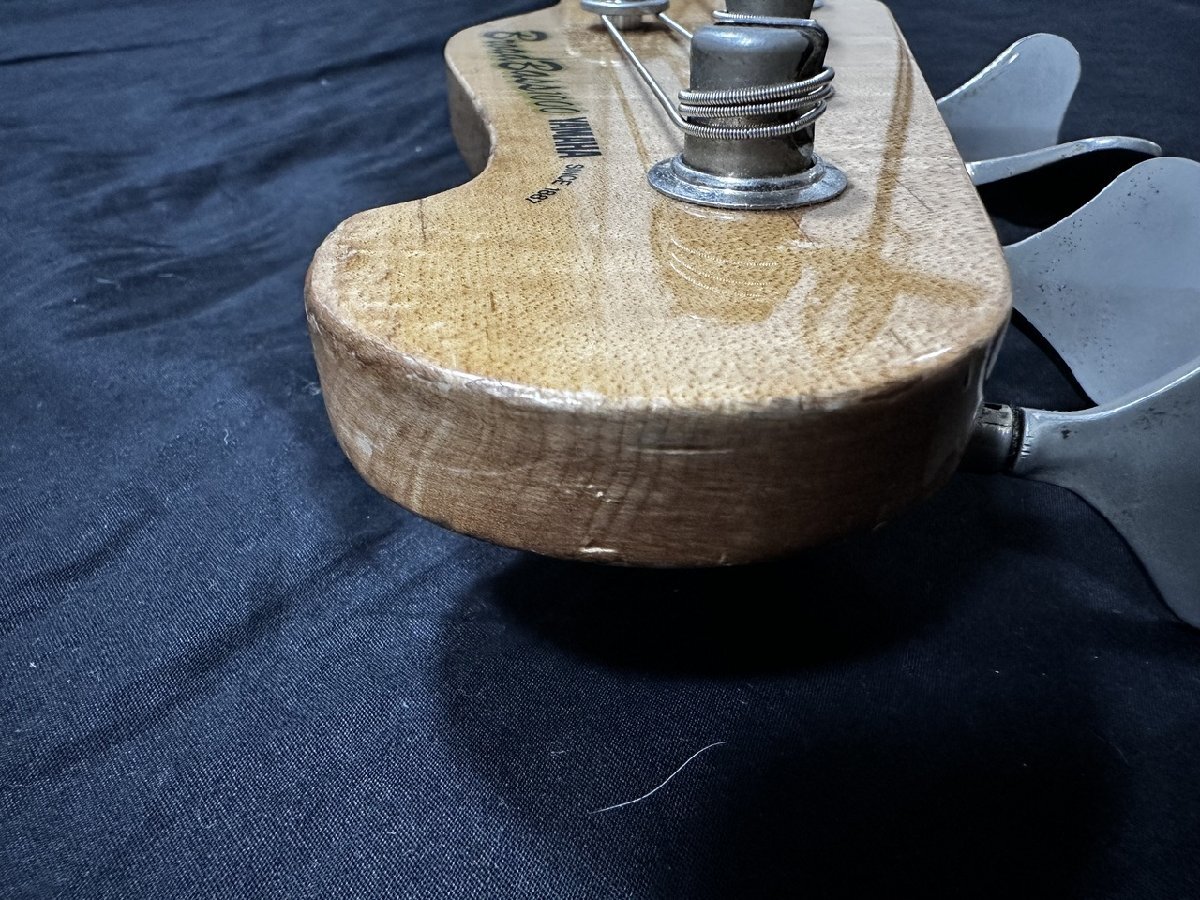 40年以上の歴史を持ち、今なおベースの定番モデルとして愛されるYAMAHA BBシリーズ。本機はBBシリーズの初期に生産されたBB1000でございます。現行モデルと比較するとピックガードやペグの形状が変わっており、少しビザールチックなデザインになっています。