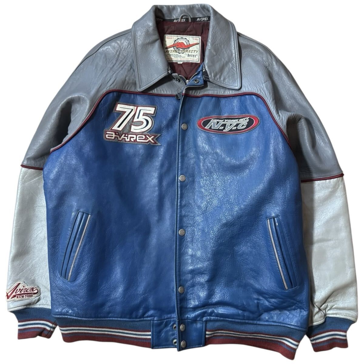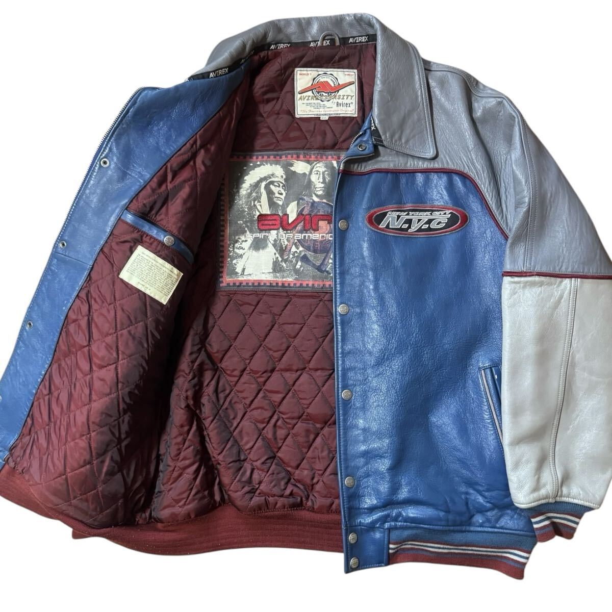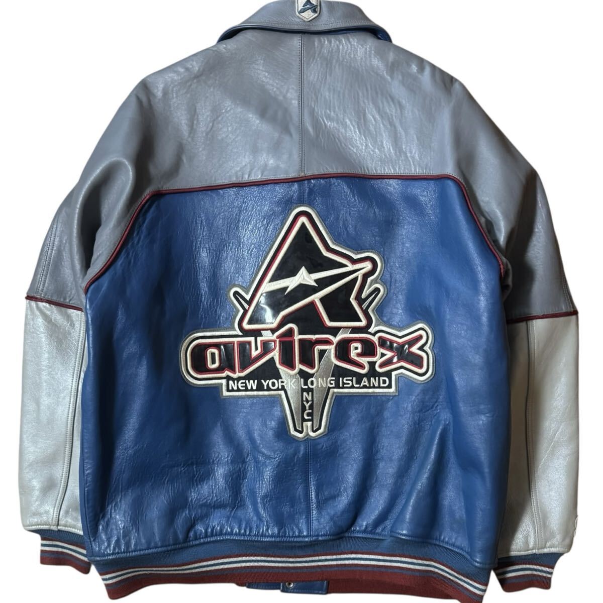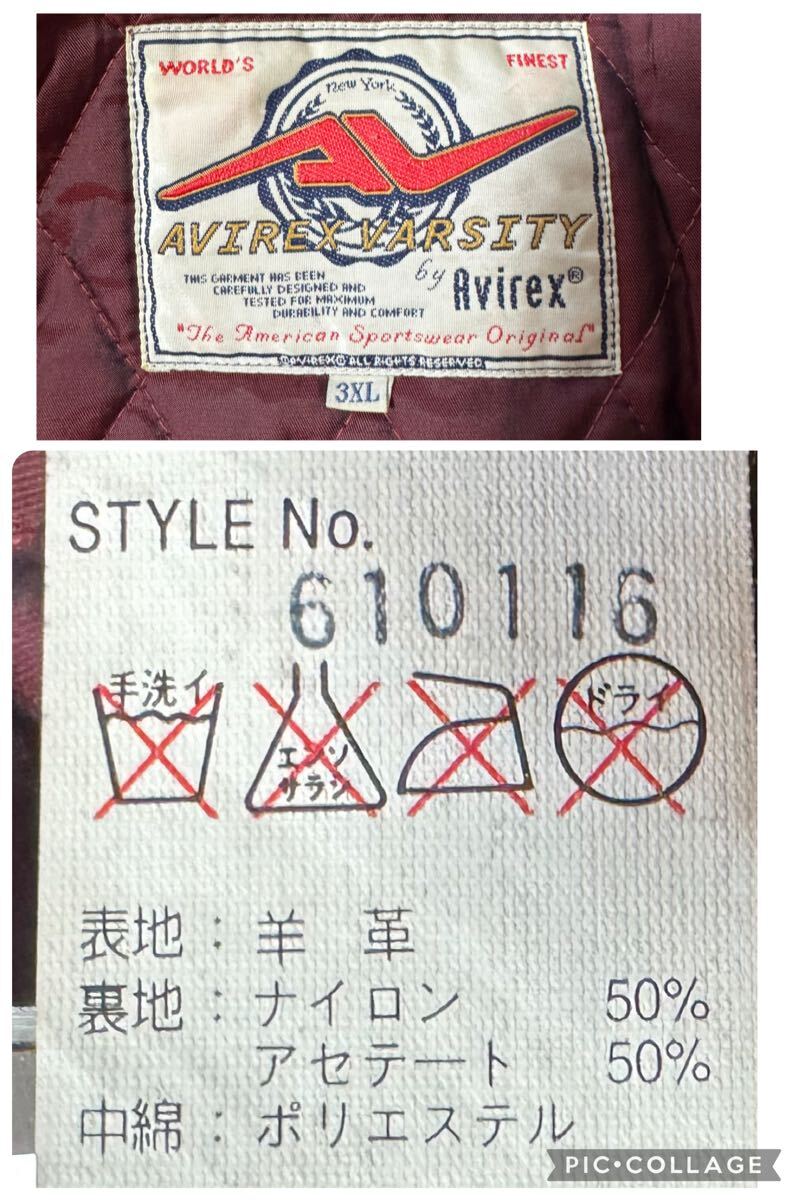 【ビッグサイズ3XL】AVIREX ビンテージ バックロゴ オールレザー バーシティージャケット キルティングライナー リブライン