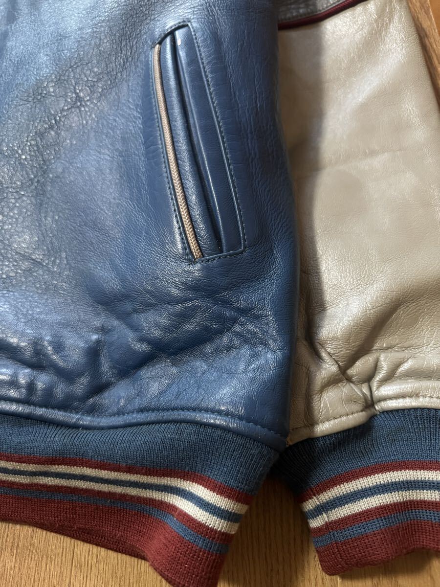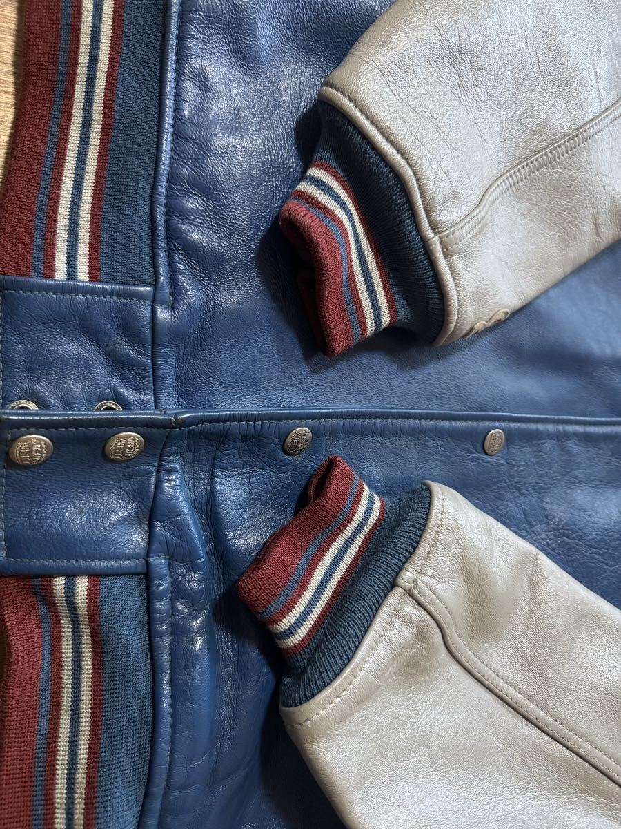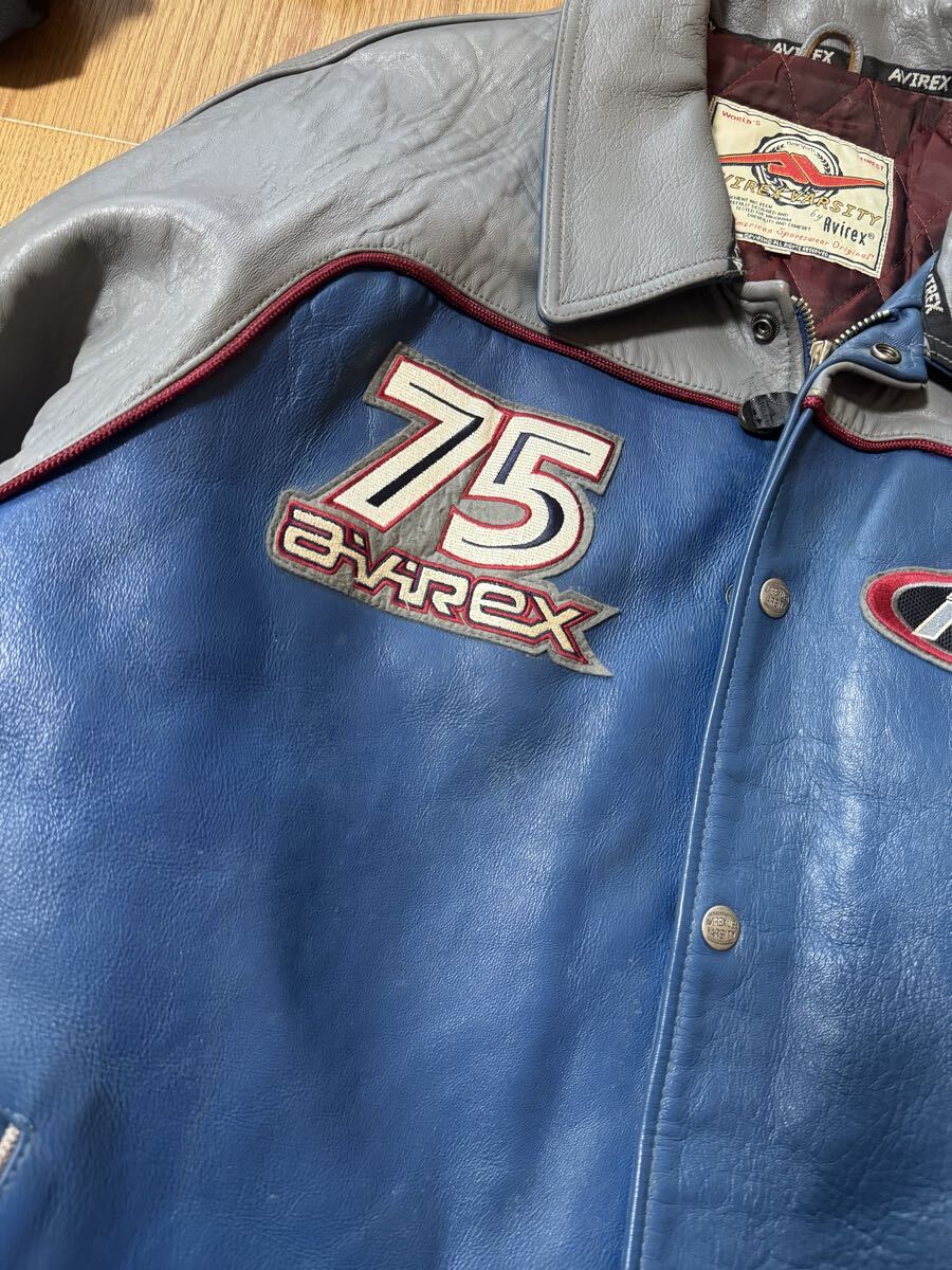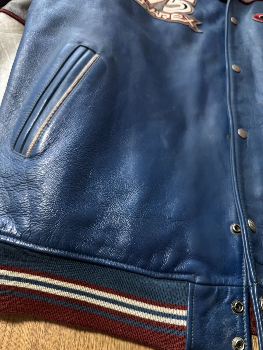 【ビッグサイズ3XL】AVIREX ビンテージ バックロゴ オールレザー バーシティージャケット キルティングライナー リブライン