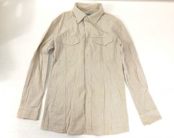 HAMNETT キャサリン ハムネット KATHARINE HAMNETT LONDON ロング丈 ストライプ 長袖シャツ メンズ コットン100% 日本製 M ベージュ系 です。