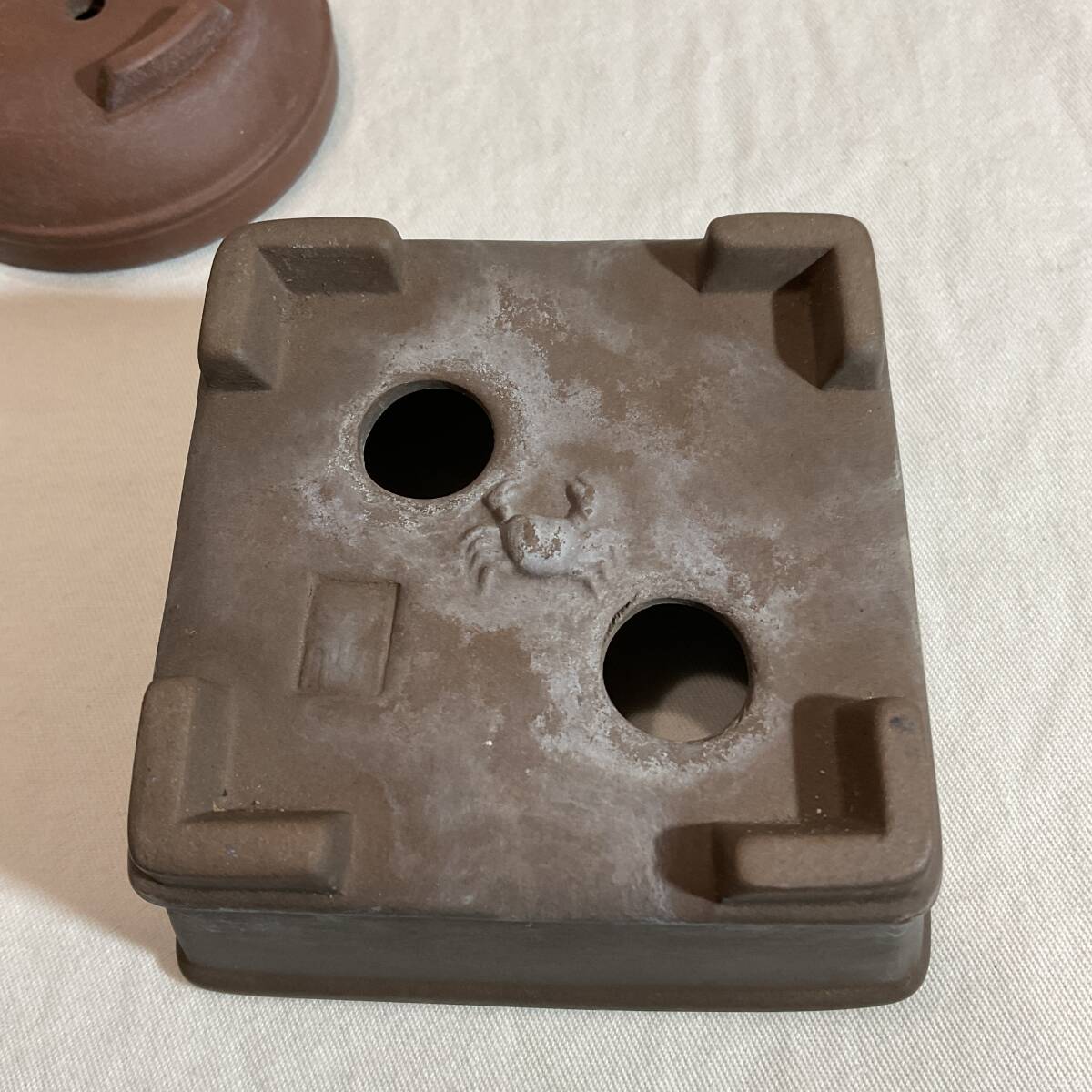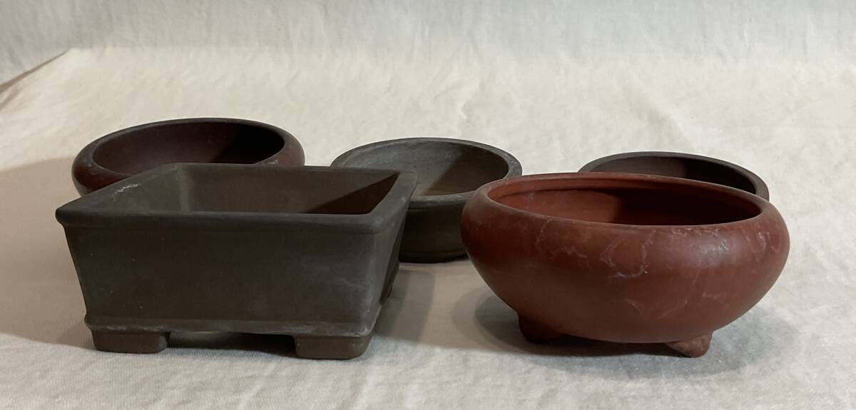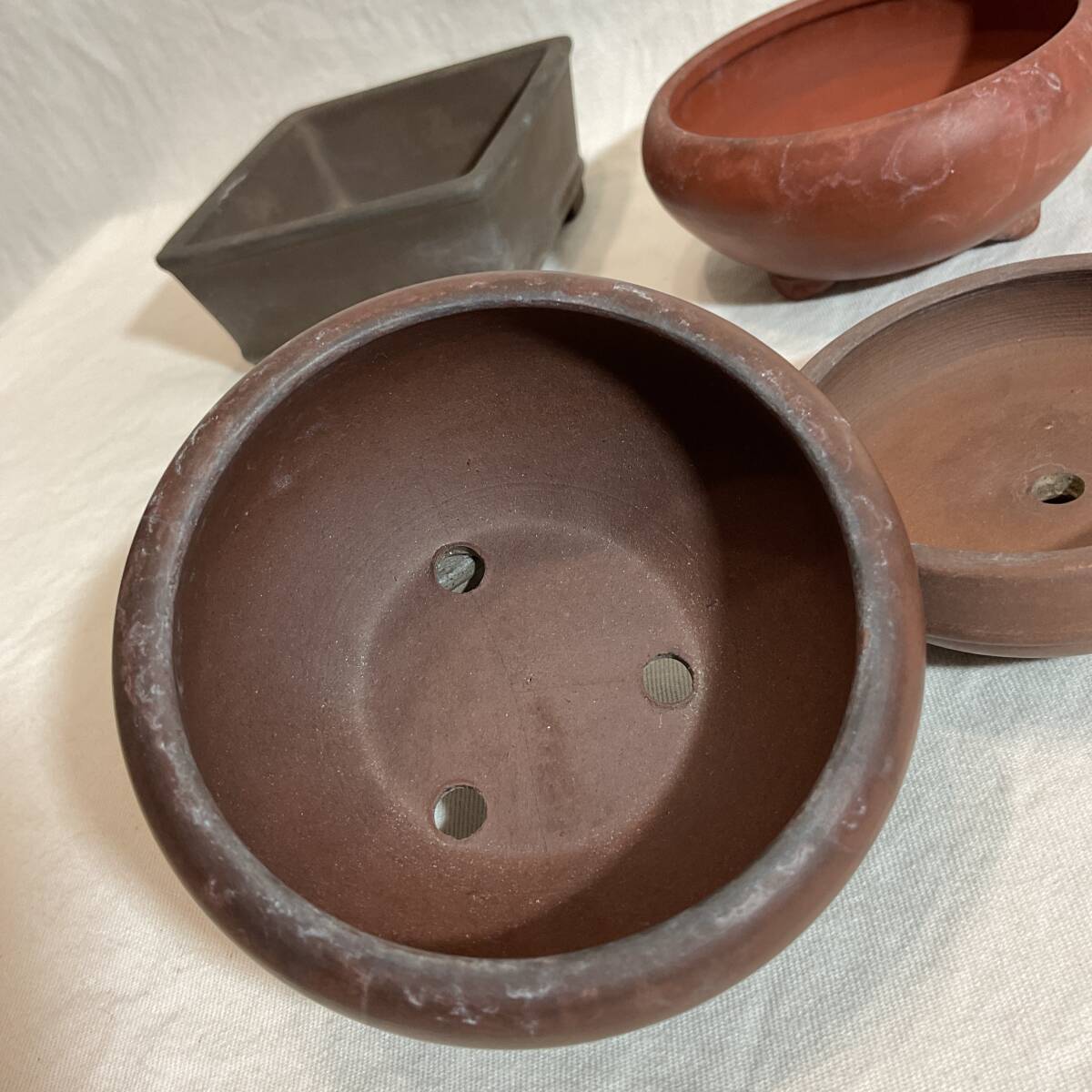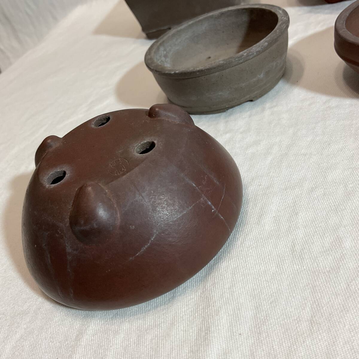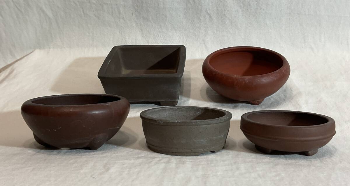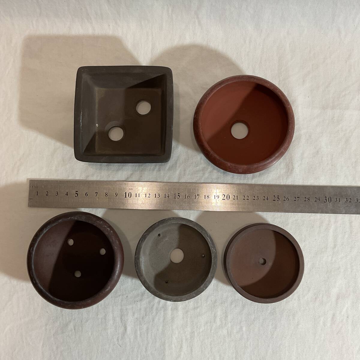 No.30 小鉢5点まとめて 丸、四角 在銘 作家物  陶園山林?中国?蟹の落款 ミニ鉢 小鉢 盆栽 植木鉢 骨董 中古品 送料無料